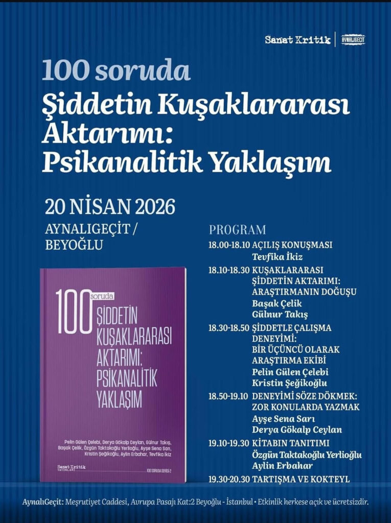 100 Soruda Şiddetin kuşaklararası Aktarımı: Psikanalitik Yaklaşım paneli 20’Nisan’da Nisan 14, 2026 yazar edebiyathaber 100 Soruda Şiddetin kuşaklararası Aktarımı: Psikanalitik Yaklaşım paneli 20’Nisan’da. Panel İstanbul, Aynalıgeçit’te gerçekleşecek. Pelin Özer’in “Yazmanın 41+1 Hali”nde Yeni Tur BaşlıyorBiyolog ve Sinirbilim uzmanı Prof. Dr. Sinan Canan, 17 Nisan'da TED Ata Sahne’deSelçuk Demirel'in 'Yerle Gök Arasında' sergisi 3 Mayıs -25 Mayıs arasında Ankara'daKaradeniz 9. Kitap Fuarı, 28 Eylül - 6 Ekim tarihleri arasında kitapseverlerle buluşuyorHaliç Okumaları'nın bu ayki konuğu Tuna KiremitçiFatih Edebiyat Günleri "İmzalı Kitapların Peşinde" sergisiyle kapılarını açtı
