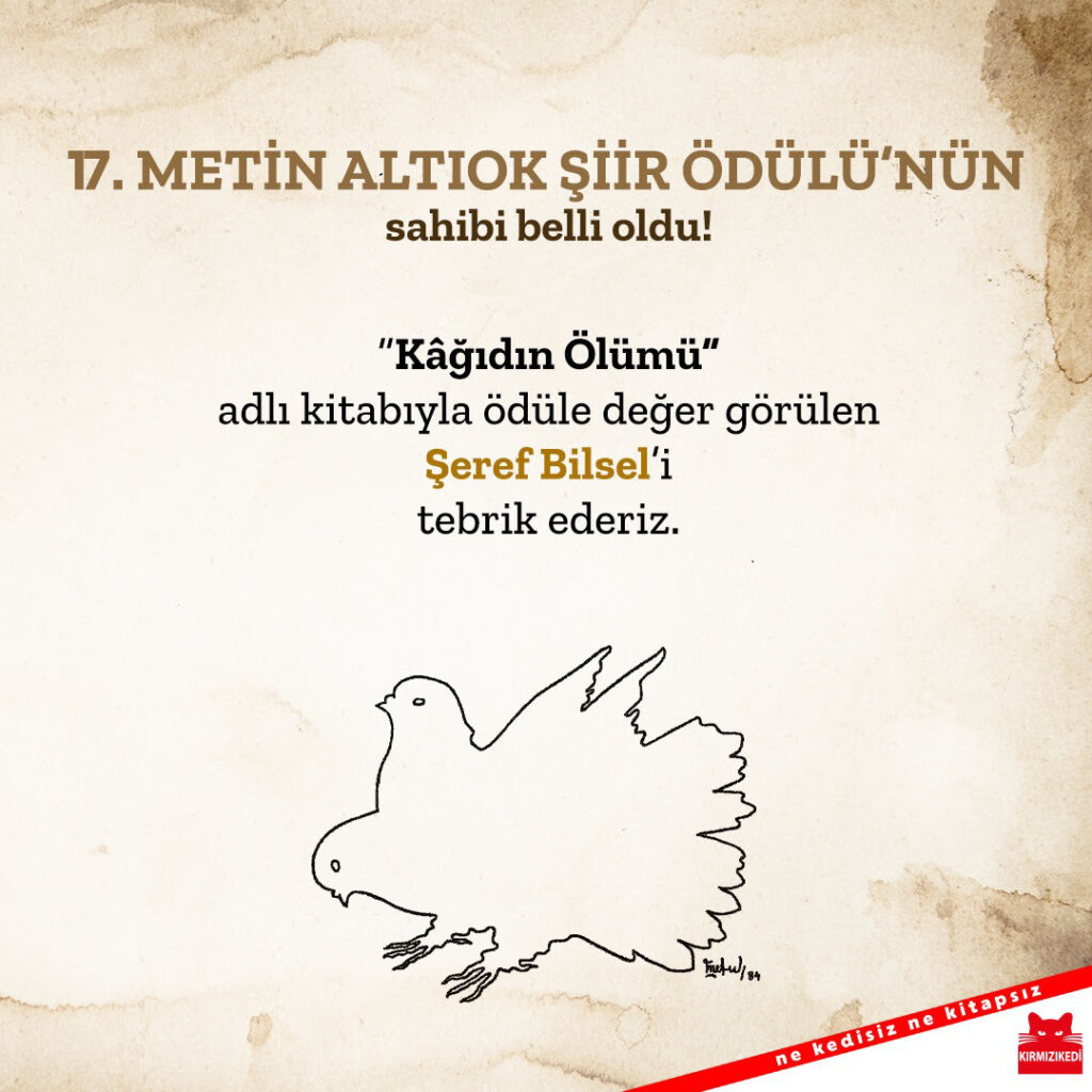 Bu yıl on yedincisi düzenlenen Metin Altıok Şiir Ödülü’nü Şeref Bilsel’in “Kâğıdın Ölümü” kitabı kazandı.