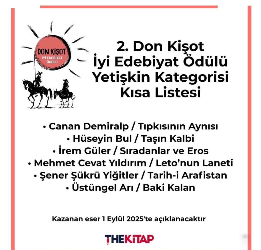 2. Don Kişot İyi Edebiyat Ödülü Yetişkin Kategorisi Kısa Listesi açıklandı.