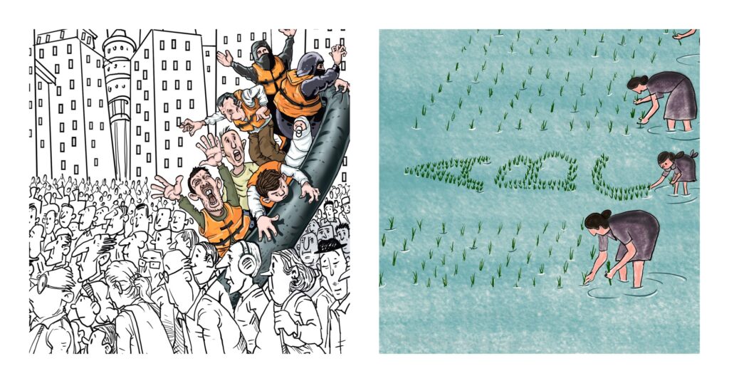 İtalya’dan Marco De Angelis’in başkanlığında; Ercan Akyol (Türkiye), Angel Boligan Corbo (Küba), Gürbüz Doğan Ekşioğlu (Türkiye), Saad Hajo (Suriye), Piyale Madra (Türkiye), Tan Oral (Türkiye) ve Yoshiaki Yokota’nın (Japonya) yer aldığı, dünya çapında ün kazanmış karikatür ustaları ve sanatçılardan oluşan uluslararası jüri eserleri değerlendirdi.