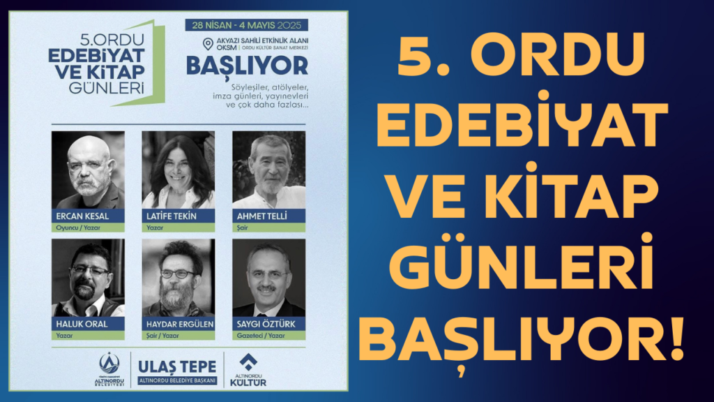 5. Ordu Edebiyat ve Kitap Günleri 28 Nisan’da başlıyor. Etkinlik Akyazı Sahili Etkinlik Alanı ve OKSM Ordu Kültür Sanat Merkezi’nde gerçekleştirilecek.