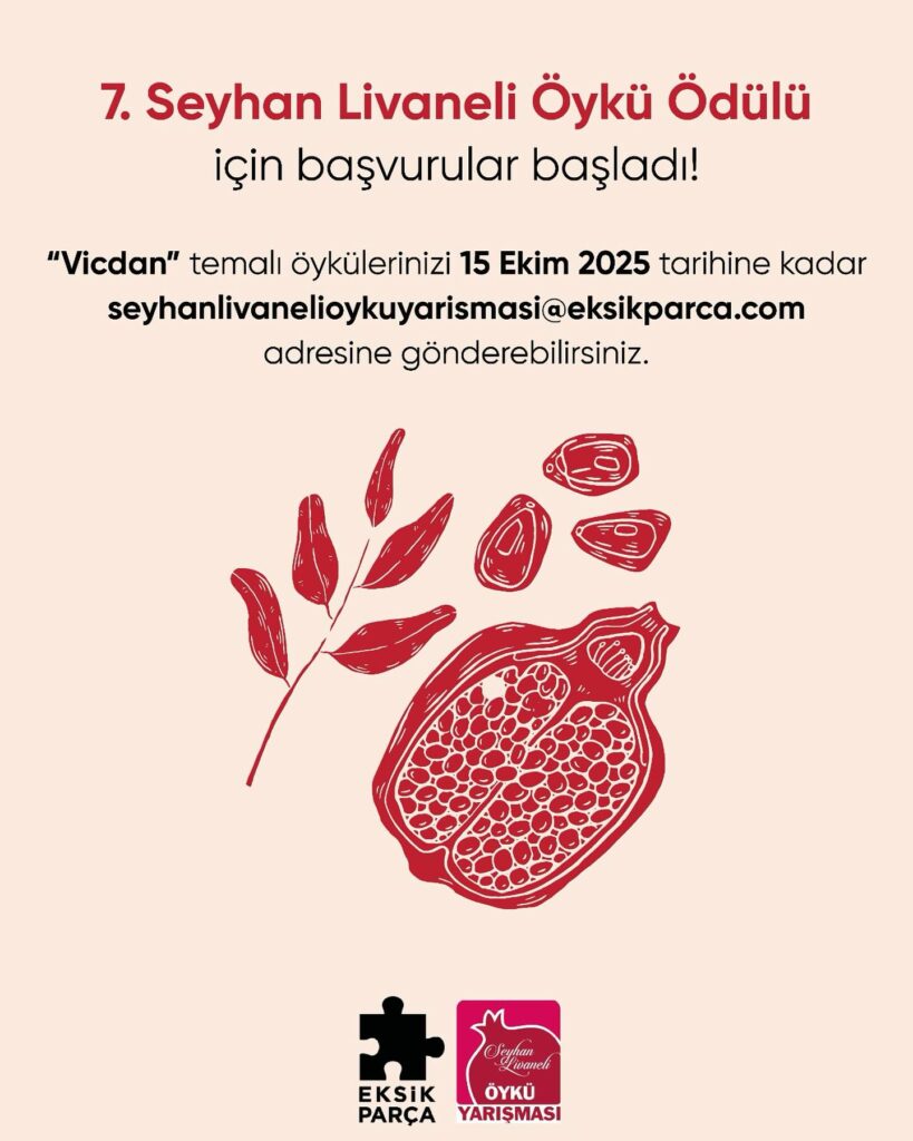7. Seyhan Livaneli Öykü Ödülü başvuruları devam ediyor. Yarışmaya son başvuru tarihi 15 Ekim 2025.