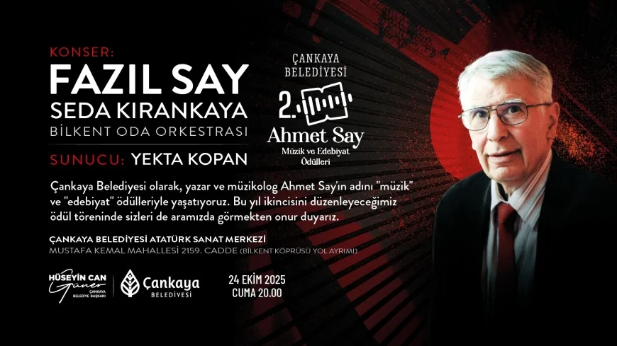 Çankaya Belediyesi tarafından düzenlenen Ahmet Say Edebiyat ve Müzik Ödülleri, bu yıl ikinci kez sanatseverlerle buluşuyor. 24 Ekim’de Atatürk Sanat Merkezi’nde gerçekleştirilecek törende, edebiyat ve müzik dünyasının seçkin isimleri bir araya gelecek.
