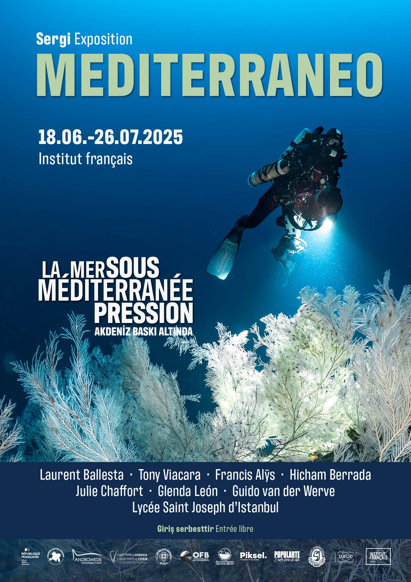 Institut français Türkiye, Akdeniz’in çevresel tehditlerine dikkat çekmek amacıyla düzenlediği etkinlik dizisi ‘Akdeniz Baskı Altında’ ‘Mediterraneo’ adlı fotoğraf sergisi ile devam ediyor. Sergi, İzmir, Ankara, Muğla ve Eskişehir’den sonra 18 Haziran-26 Temmuz tarihleri arasında Piksel Creative Solutions’ın desteğiyle İstanbullu sanatseverler ve çevrecilerle buluşuyor.