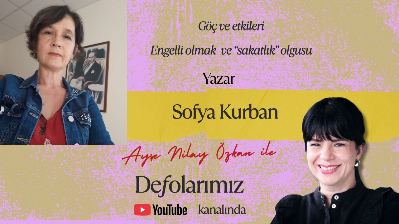 1980 yılında Türkiye’ye göçmüş olan yazar Sofya Kurban ile Ayşe Nilay Özkan Defolarımız Youtube kanalında göçün hem göçebe hem de göçülen toplum üzerindeki etkileri hakkında sohbet ediyorlar. Sofya Kurban kendi defo tanımını yaparken oldukça farklı bir bakış açısı sunuyor. Ayrıca nesiller boyu devam eden yeni topraklara uyum sürecini anlatırken kendi göç tecrübelerinden de bahsediyor. Ortopedik engeli ve toplumun engelli bireyi “sakatlaştırması” hakkında da samimi paylaşımlarda bulunan Sofya Kurban, yaşadıklarının edebiyat serüvenine katkısı olduğunu belirtiyor. Ayşe Nilay Özkan kendi işitme engeli, Sofya Kurban ise ortopedik engeli hakkında toplumda yaşadıklarından ve toplumdan beklentilerini ifade ettikleri yararlı bir sohbet gerçekleştiriyorlar.