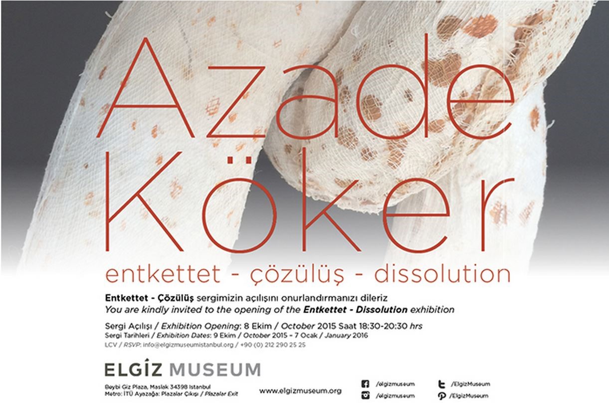 Elgiz Müzesi, Türkiye’nin çağdaş sanatçılardan biri olan Azade Köker’in solo sergisine ev sahipliği yapıyor. Sanatçı eserlerinde kentleşme ile doğanın tahribine rağmen doğanın direncini konu olarak da ele alıyor. ‘Endkettet – Çözülüş’ isimli sergisinde Azade Köker’in güncel sosyo-politik konuları barındıran, daha evvel gösterilmemiş karışık teknik ve kağıt çalışmaları ile birlikte yeni yaptığı mekan odaklı enstalasyonları müzede ziyaretçiye sunuluyor.