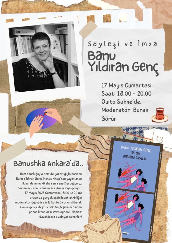 Banu Yıldıran Genç, son kitabı Yan Yana Durduğumuz Zamanlar ile Ankara, Quito Sahne’de okurlarıyla buluşuyor. Etkinlik Burak Görün moderatörlüğünde saat 18.00’de.