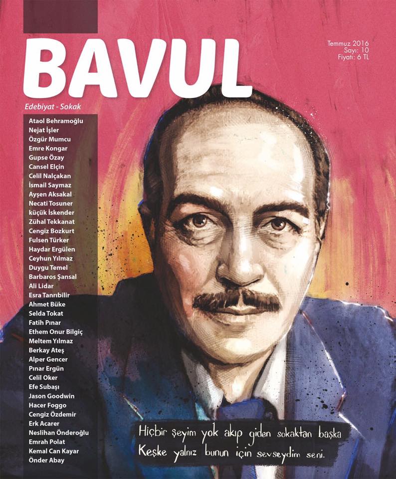 Bavul Dergi’nin Temmuz 2016 sayısı çıktı Temmuz 2, 2016 yazar admin Bavul Dergi, dopdolu içeriği ve zengin yazar kadrosuyla raflarda. Dergi, Temmuz 2016 sayısının kapağını Cemal Süreya’ya ayırmış. Not: Bu bir ilandır. Yıllık Yayıncılık Konferansı kayıtları başladıBir patika yaratmak (I): Güneşin şavkı | Feridun AndaçÇocuklara ve yetişkinlere: “Üç Mağara Dağı” | Zeynel ÖzbalçıkAhmet Tulgar'ın önerdiği 6 kitap | Funda Dörtkaş"Gençlikte Defalarca Kaybolmak” paneli bugünGazeteci-Yazar Alpay Kabacalı vefat etti!