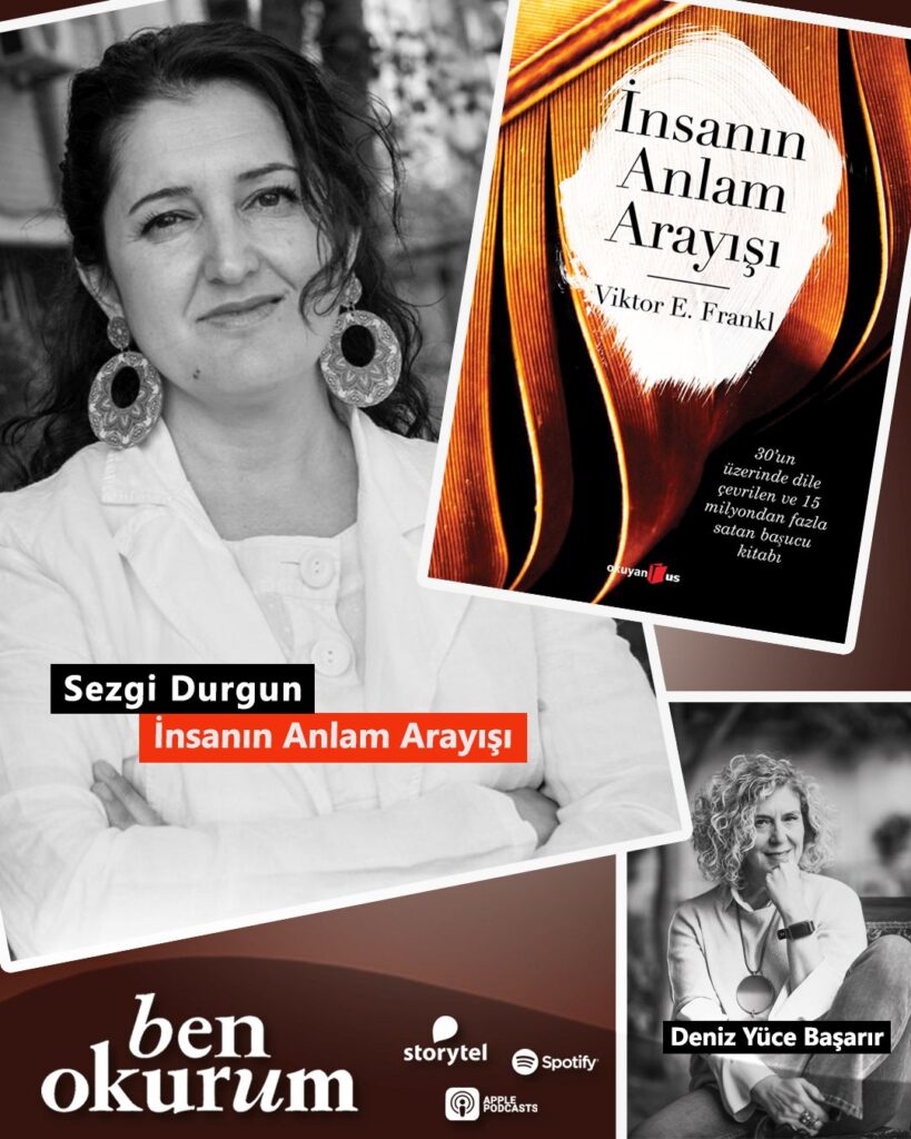 Sohbetle bilgiyi buluşturan podcast serisi “Ben Okurum”un yeni bölümünde Deniz Yüce Başarır, kendisi de toplama kamplarında uzun süre bulunmuş nörolog ve psikolog Viktor E. Frankl ve 1946 yılında yazdığı kitabını felsefi bir bakış açısından değerlendirmek üzere, konuğu akademisyen Sezgi Durgun ile derin bir sohbete dalıyor. Durgun, İnsanın Anlam Arayışı’nın “Frankl’ın toplama kamplarında yaşadıkları kadar, Üçüncü Viyana Ekolü olarak anılan, kendi geliştirdiği psikoterapi yöntemi logoterapiyi de anlatan bir kitap” sözleriyle ifade ederken; Başarır da “İnsanın Anlam Arayışı, ölümden, zulümden, toplumsal trajediden söz eden bir kitap. Ama tuhaftır, umutlu bir kitap da diğer yandan. Frankl, toplama kampından çıkıp kitabını bitirmeyi başarmış işte. Üstelik o kitap tüm dünyada fırtınalar estirmiş, estirmekte. Frankl her ne kadar o zor koşullarda hayaliyle yaşama sarıldığı karısını kaybetmiş olsa da yeni bir hayat kurmayı başarmış” cümlelerine yer veriyor.