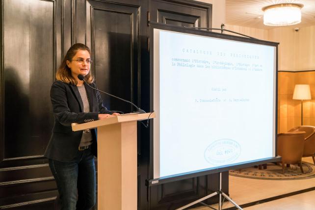 Beyoğlu’nda faaliyet gösteren dokuz kültür ve bilimsel araştırma kurumunun veri tabanlarına tek bir platformdan erişim sağlayan BiblioPera projesi Koç Üniversitesi Suna Kıraç Kütüphanesi Direktörü Tuba Akbaytürk’un sunumuyla tanıtıldı.