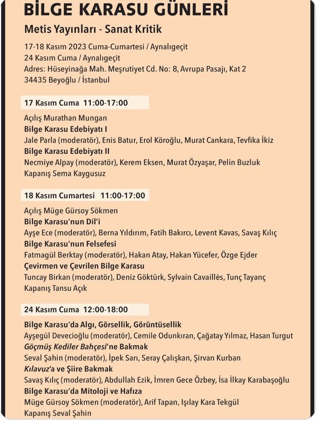 Sanat Kritik ile Metis Yayınlarının birlikte hazırladığı Bilge Karasu Günleri 17-18 ve 24 Kasım’da yapılacak.