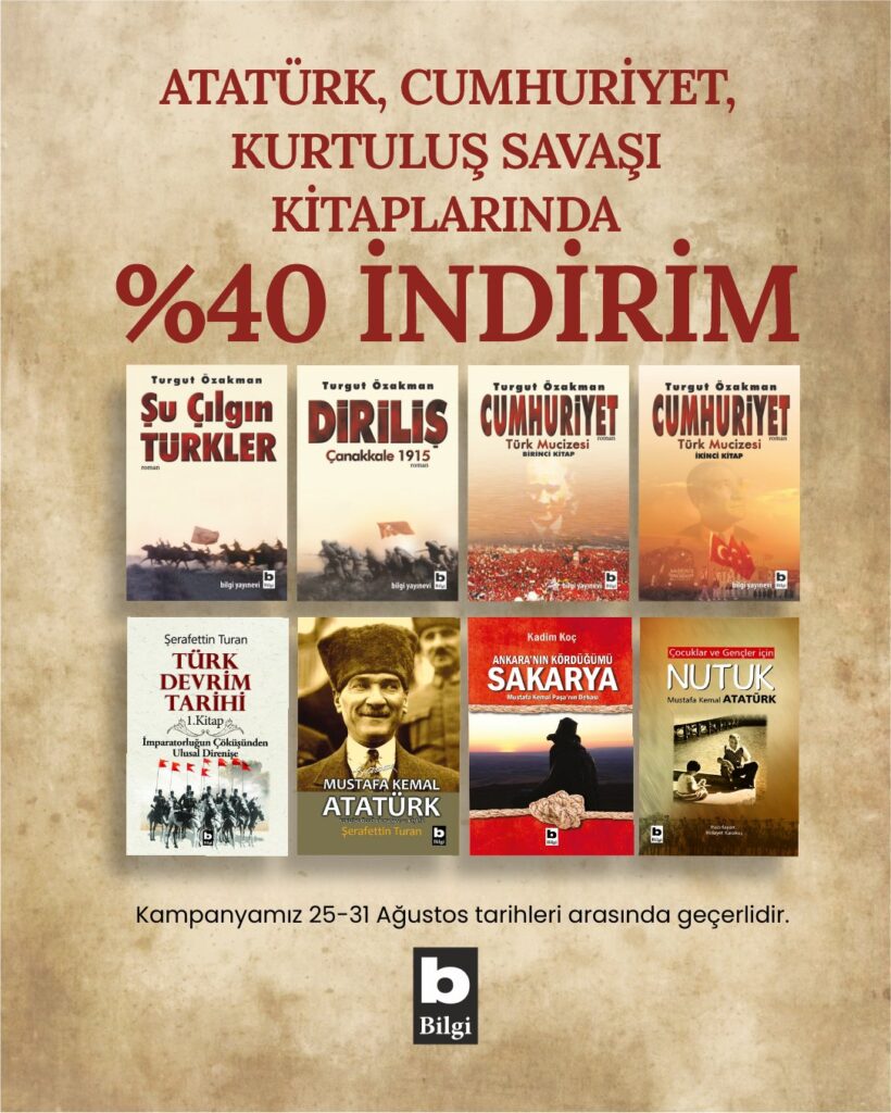 Bilgi Yayınevi’nden 30 Ağustos Zafer Bayramı’na özel Atatürk, Kurtuluş Savaşı ve Cumhuriyet tarihimizle ilgili kitaplarda özel indirim kampanyası.