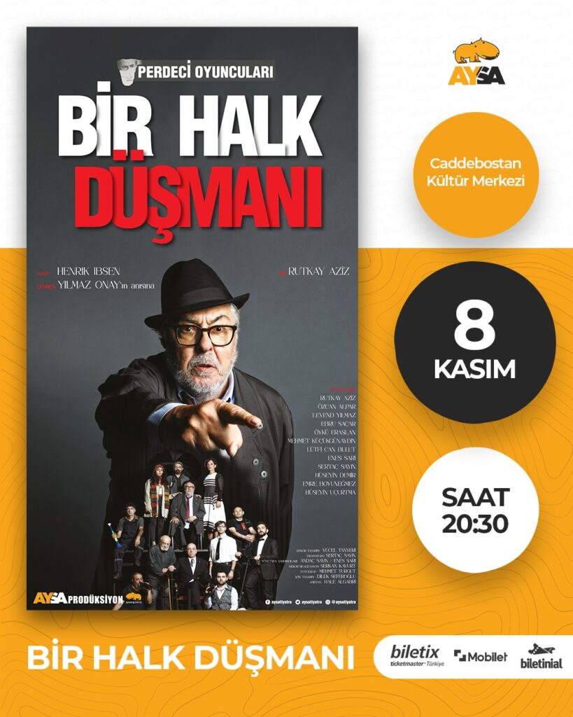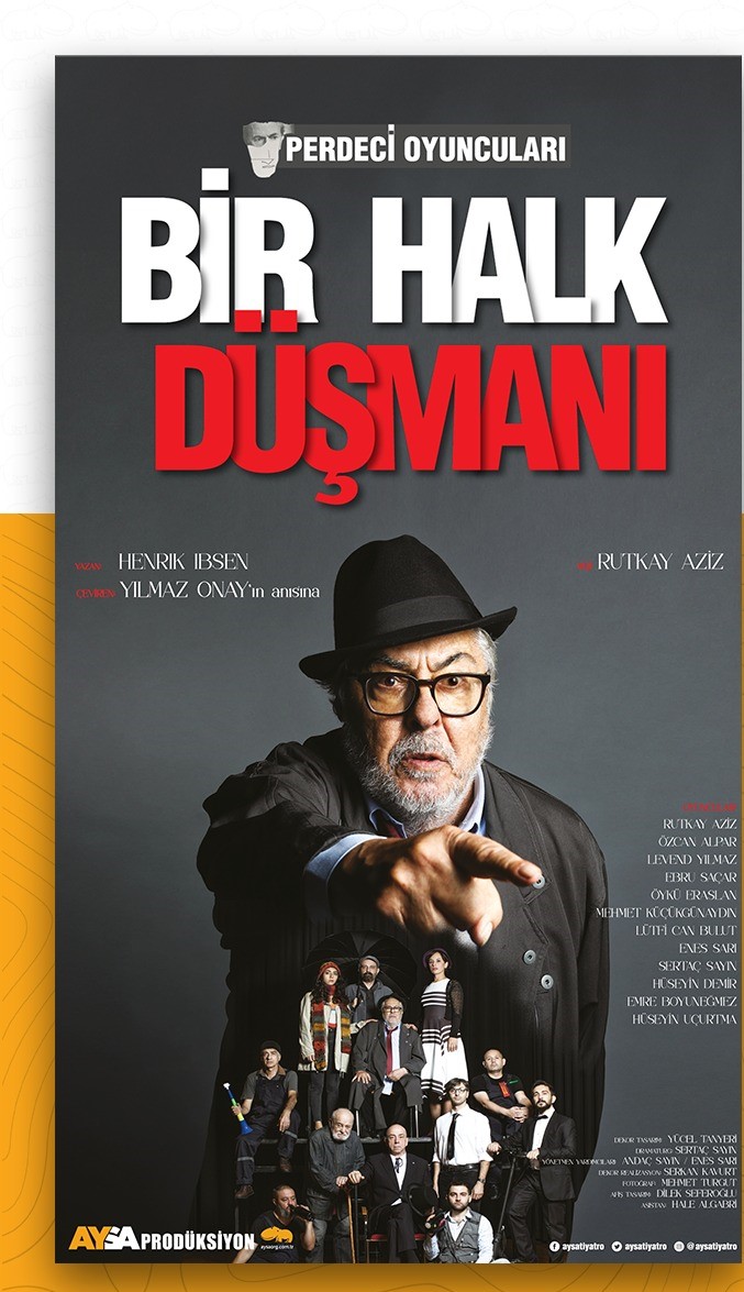 Dünyada çevre duyarlılığı konusunda yazılmış ilk tiyatro oyunu “Bir Halk Düşmanı”, Rutkay Aziz imzası ile sahneye konulmaya hazırlanıyor. Perdeci Oyuncuları – Aysa Prodüksiyon tarafından sahneye konulan oyun; bir bilim insanı ve aydının yalnız kalmak pahasına gerçekleri savunmak için verdiği mücadeleyi anlatıyor.