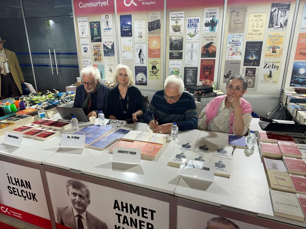 Cumhuriyet Kitap standında Yalın Gündüz, Hürriyet Yaşar, Özlem Yüzak ve Orhan Bursalı ile yan yana oturduk. Stant görevlisi İsa kardeşimiz sağ olsun ne zaman istesek çay servisi yaptı.