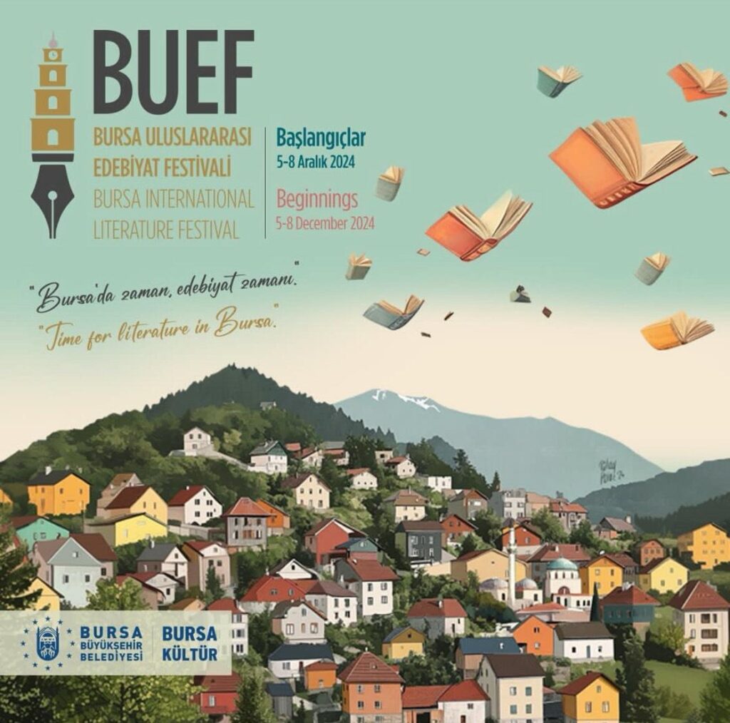 Bursa’nın ilk uluslararası edebiyat festivali BUEF – Bursa Uluslararası Edebiyat Festivali, 5 – 8 Aralık 2024 tarihleri arasında edebiyatseverlerle buluşacak. Heyecanla beklediğimiz bu festivalde, Avusturya, Hollanda, Kuzey Makedonya, Çek Cumhuriyeti ve Türkiye’den 17 sanatçı okurlarla buluşacak.