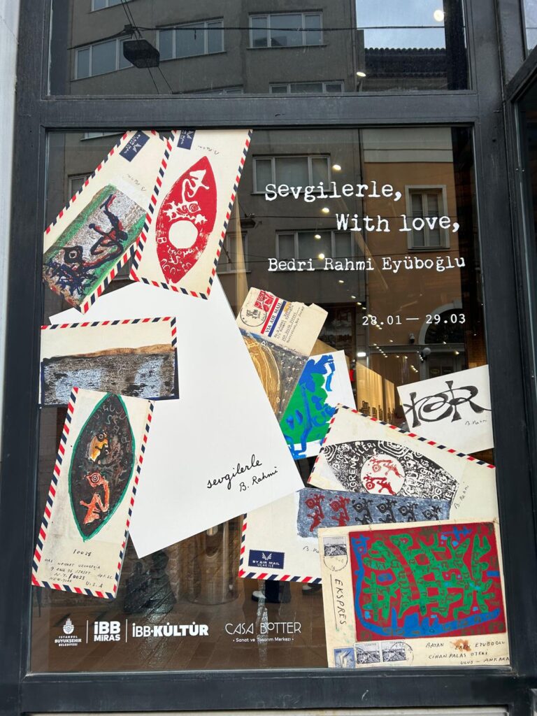 Casa Botter’deki sergi Bedri Rahmi Eyüboğlu’nun ailesi ve sanatçı dostlarıyla kurduğu ilişkileri yansıtan mektupların zarflarından oluşuyor. Bedri Rahmi Eyüboğlu, Eren Eyüboğlu, Sabahattin Eyüboğlu ve Mehmet Hamdi Eyüboğlu’nun yanı sıra Fikret Mualla, Mustafa Pilevneli, Turan Erol, Mehmet Ali Cimcoz, Tosun Bayraktaroğlu ve Ertuğrul Özakdemir gibi isimlere Türkiye’nin yanı sıra ABD, Kanada ve Fransa’dan zarflarına resimler, desenler çizdiği mektuplar yollamış. Sergide yer alan 142 zarfın birer sanat eseri. Sergide ayrıca Fikret Mualla’nın Bedri Rahmi’ye yazdığı mektuplarile yakın dostu Nazım Hikmet için kaleme aldığı “Zindanı Taştan Oyarlar” (Yiğidim Aslanım) şiirinin el yazması da yer alıyor. Casa Botter’deki sergi 29 Mart’a dek görülebilir.