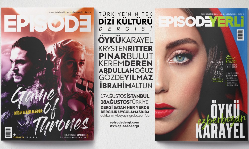 Episode’un bu sayısında “İktidar ve Ölüm Arasında: Game of Thrones” dosyasını ve Episode Yerli kısmında ise güzel ve yetenekli, “Ezberbozan” oyuncu Öykü Karayel’i çok özel karelerle ve dopdolu bir sohbetle konuk ediyor.