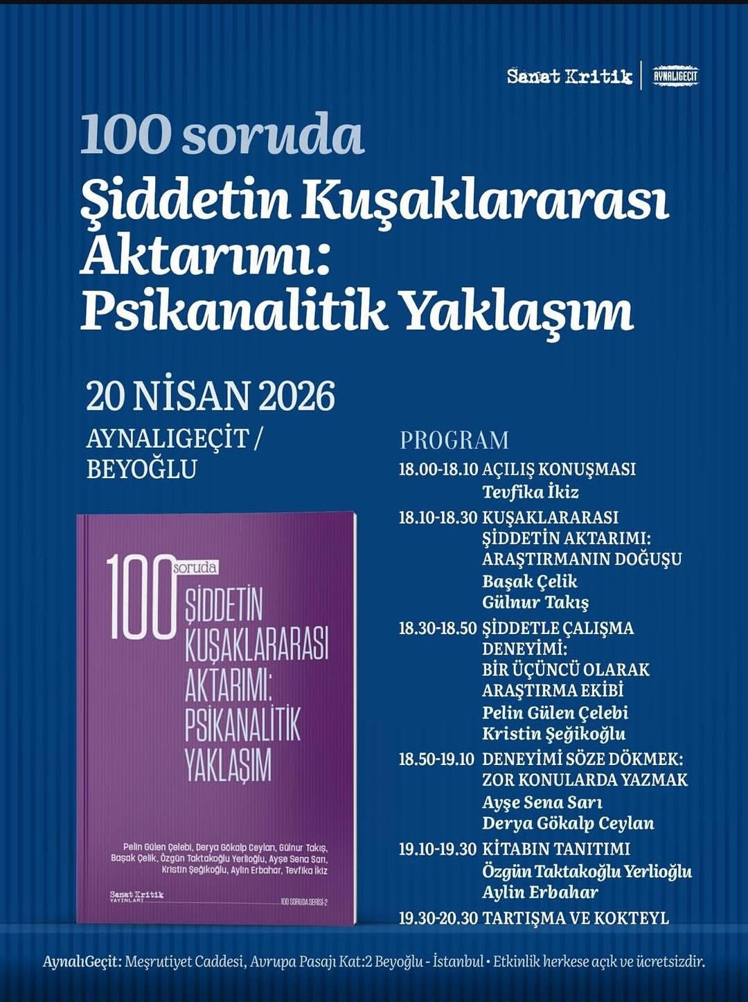 100 Soruda Şiddetin kuşaklararası Aktarımı: Psikanalitik Yaklaşım paneli 20’Nisan’da. Panel İstanbul, Aynalıgeçit’te gerçekleşecek.