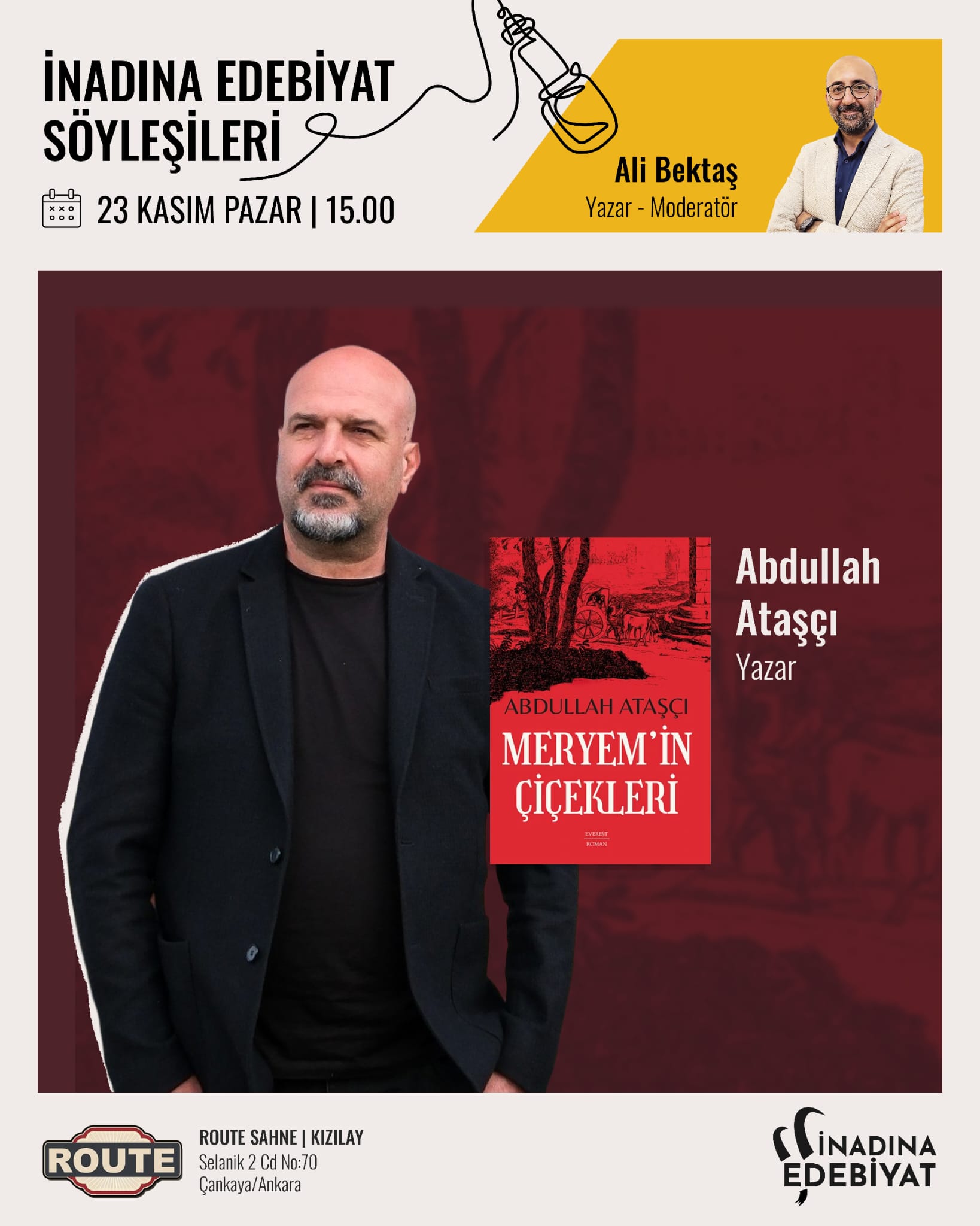 “İnadına Edebiyat Kitap Kulübü”nün Ankara’da okurların yoğun katılımıyla gerçekleştirdiği “İnadına Edebiyat Söyleşileri”nin dördüncüsü 23 Kasım Pazar, saat 15.00’te Route Sahne-Kızılay’da. ...