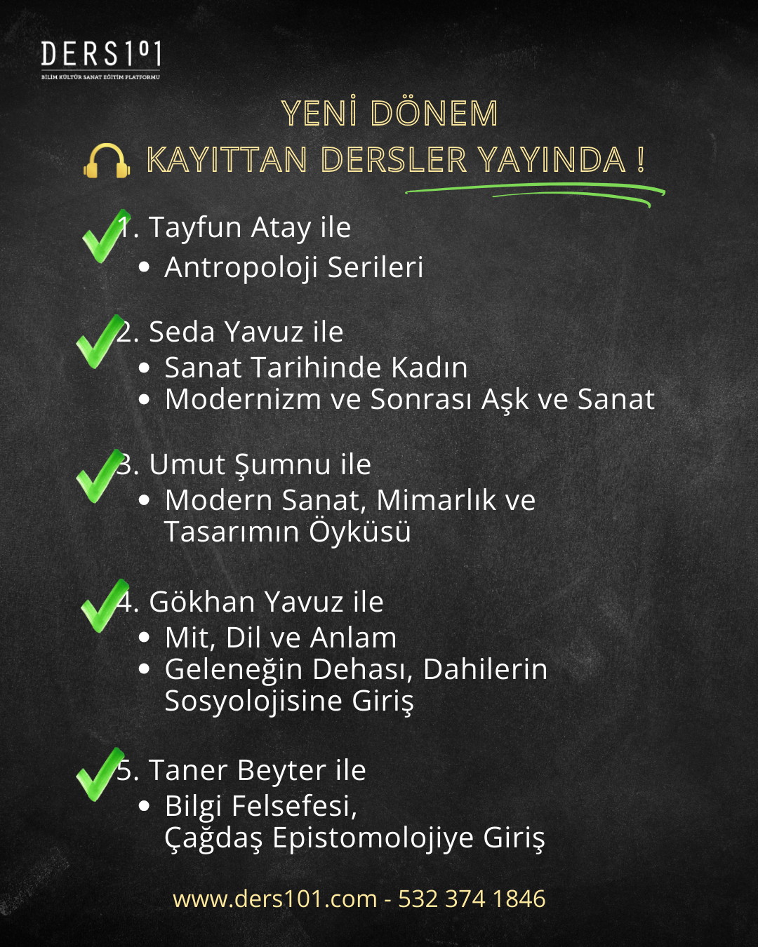 Bilim Kültür Sanat Eğitim Platformu’nun hazırladığı “Dilediğin Zaman İzle!” temalı kayıttan dersler başladı. Bültenden: 5 farklı eğitmen, 9 farklı konu ...