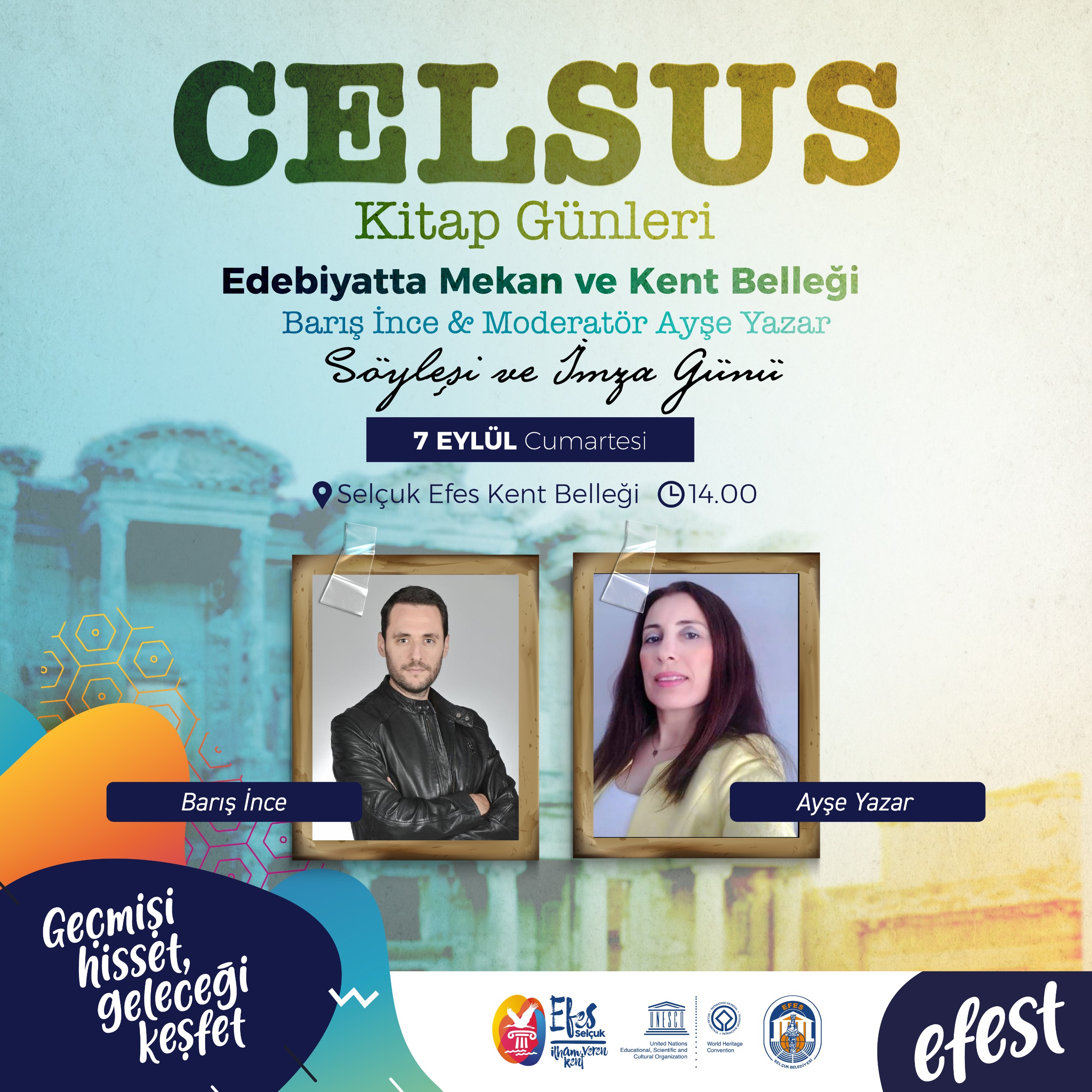Selçuk Belediyesi, Ünlü kütüphaneci Celsus’un anısına yapılan Efes Antik Kenti’nin görkemli anıtlarından Celsus Kütüphane’sinin adını taşıyan Celsus Kitap Günleri’nde edebiyatımızın önemli yazarlarını ağırlayacak. Söyleşiler, Selçuk ilçesinin hafıza mekânlarından Selçuk Efes Kent Belleği’nde gerçekleşecek. Etkinlerde yayınevleri kitap stantları açarak kitaplarıyla okurlarını buluşturacak.