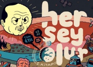 Aklımda hep karikatür dışında bir şeyler yapma fikri vardı.Penguen’e girmeden çizgi romancı olmak, öyküler yapmak istiyordum. Bir şekilde hikaye anlatıcılığına küçükten beri özeniyorum. Bant için çizdiğim şematik bir şey anlatan tek kare bir illüstrasyon vardı, her şey iç içe geçmiş. Selçuk onu gördü ve böyle “bir gündem sayfası yapsan nasıl olur” dedi. Öyle başladı. O hafta bir şeyler çizdim, hatta onun da çıkardığı notlar vardı. O zaman bu kadar sıkı bir gündem takipçisi değildim. Bir de okul devam ediyordu ve ertesi sabah kalkıp okula gidecektim. Hatta o gün ilk kez her şey olur için dergide sabahladım sanırım. 6 yıl oldu devam ediyor, diğer köşeyi çizemediğim zamanlar oldu ama “Her Şey Olur” her hafta devam etti.