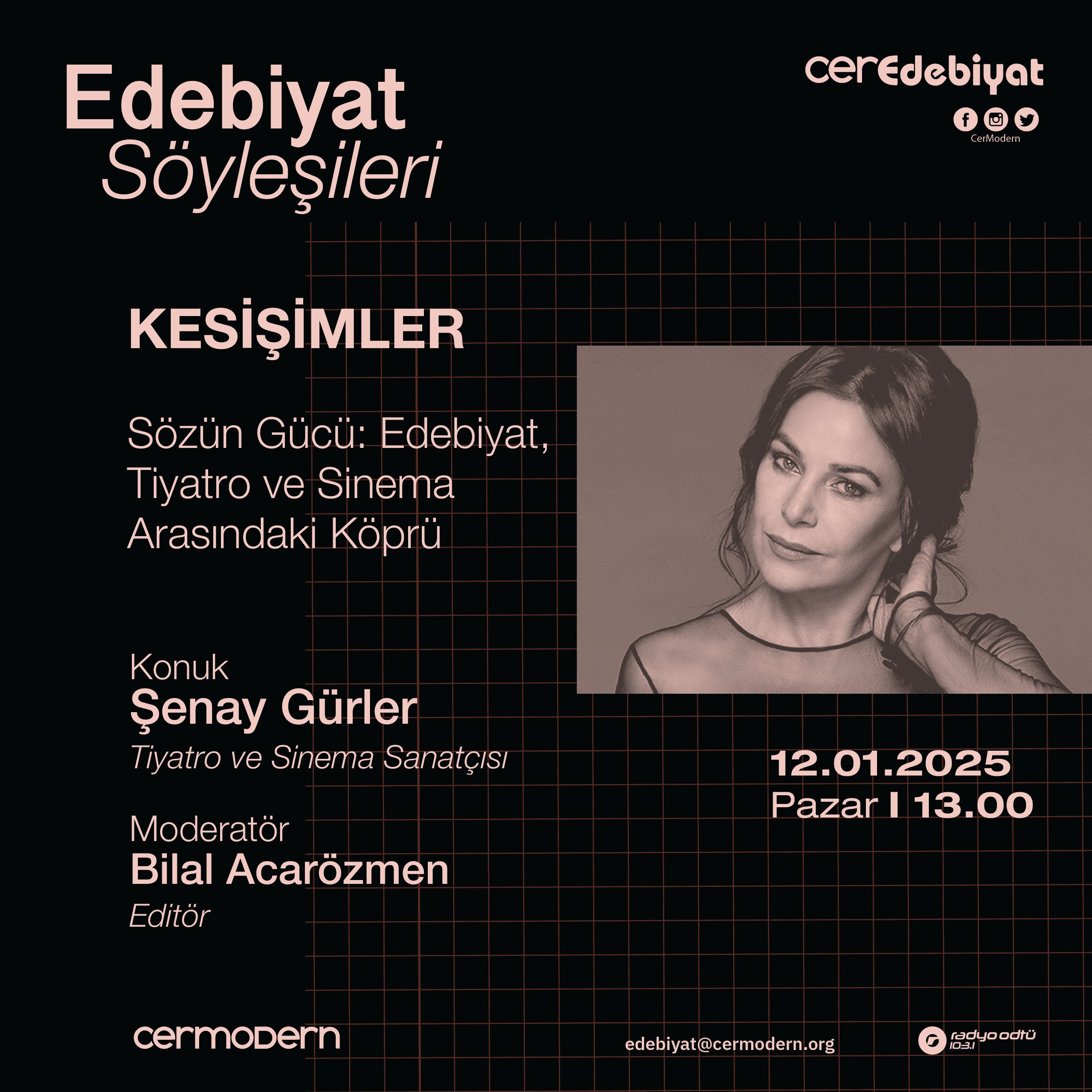 CerEdebiyat söyleşilerinin aralık ayındaki konuğu Şenay Gürler olacak. Bilal Acarözmen’in moderatörlüğünde gerçekleşecek söyleşi, 12 Ocak Pazar günü saat 14.00’te olacak. Etkinlik herkese açık ve ücretsizdir.