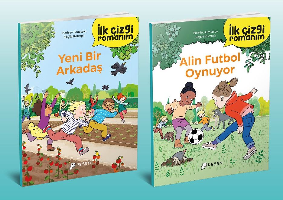 Mathieu Grousson’un yazdığı, Sibylle Ristroph’un resimlediği “Yeni Bir Arkadaş” ve “Alin Futbol Oynuyor”, 8 ve üzeri yaş grubu için Yağmur Yavaş Aydın çevirisiyle Desen Yayınları tarafından yayımlandı.