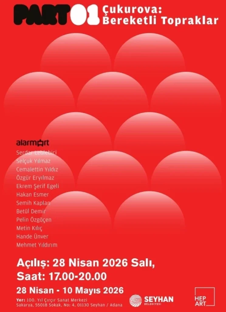 AlarmArt sanatçı topluluğu “Çukurova: Bereketli Topraklar” sergisiyle 28 Nisan’da Adana’da sanatseverlerle buluşacak. Sanatçılar ile işbirlikleri kuran HepArt organizasyonu ve Seyhan Belediyesi’nin evsahipliğinde AlarmArt’ın 12 sanatçısını bir araya getiren sergi, Çukurova’nın çok katmanlı kültürel yapısını ve tarihsel birikimini çağdaş sanat pratikleri üzerinden yeniden ele alıyor.