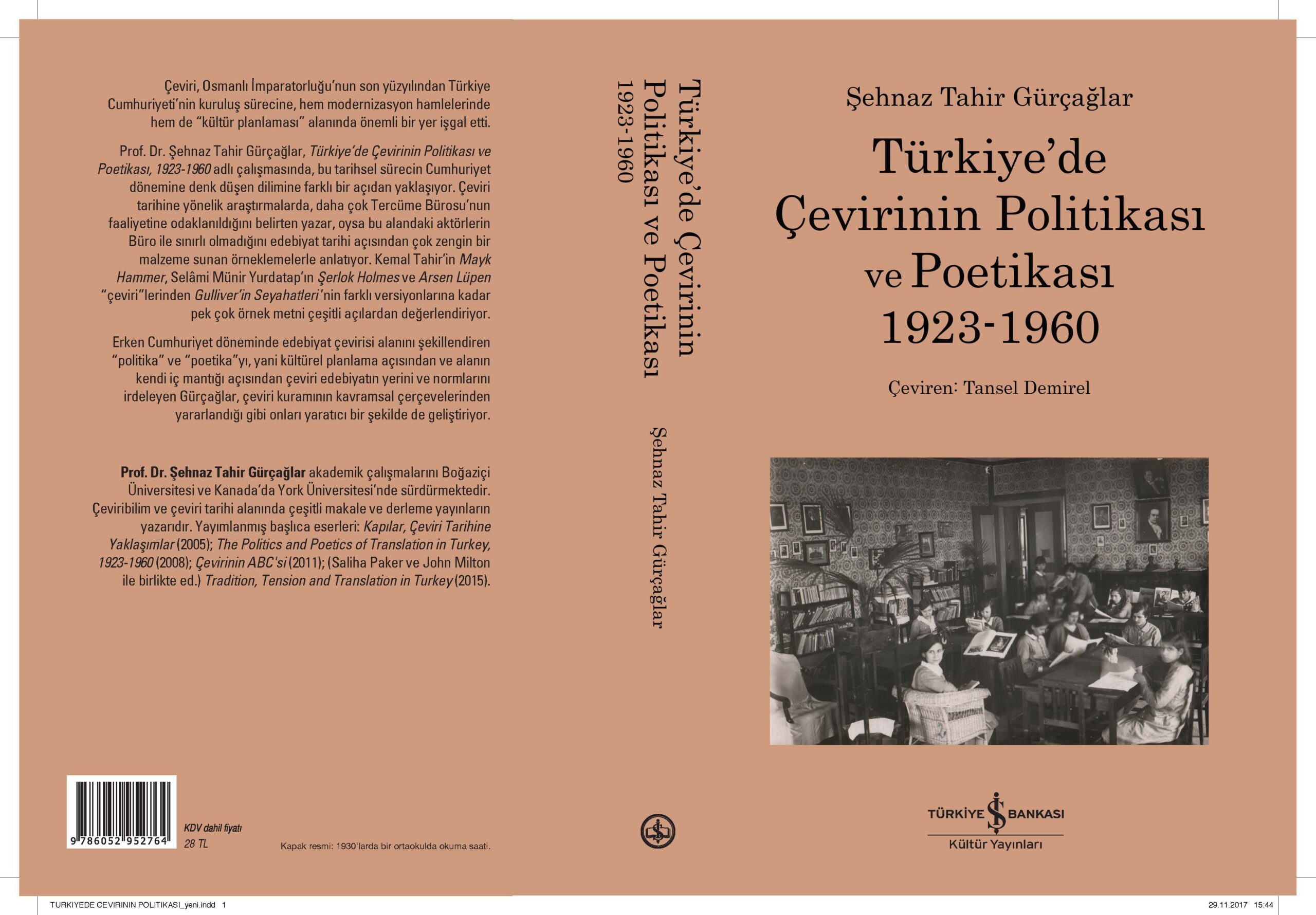 Çeviribilim ve çeviri tarihi alanının önemli isimlerinden Prof. Dr. Şehnaz Tahir Gürçağlar’ın,Türkiye’de Çevirinin Politikası ve Poetikası 1923-1960 adlı eseri Türkiye İş Bankası Kültür Yayınları etiketiyle raflardaki yerini aldı.