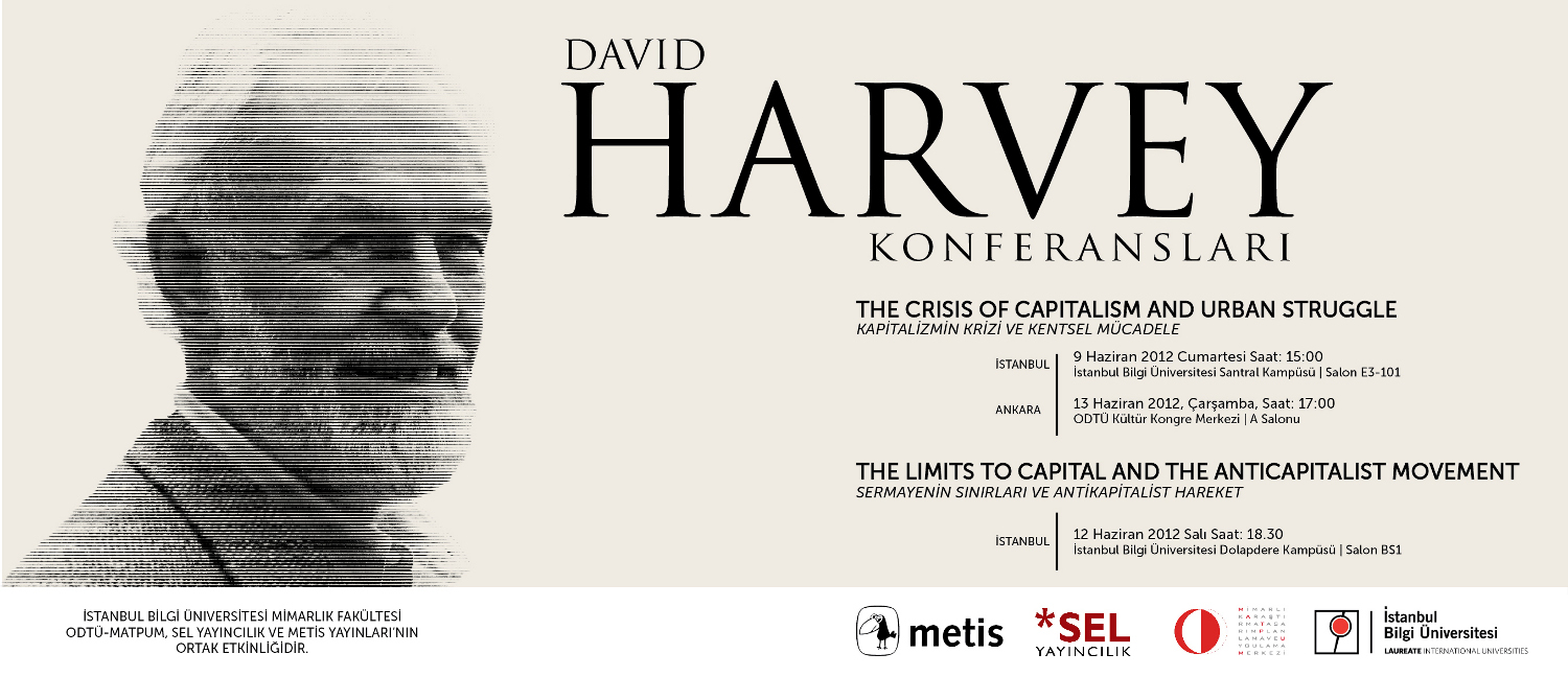 Türkiyeli sosyal bilimcilerin ve okurların yıllardır kitaplarıyla ve 2008 krizinin yıkıcı etkilerine karşı eylemlerde sosyal muhalefete verdiği destek ile yakından tanıdığı İngiliz coğrafyacı, siyasal iktisatçı, sosyal kuramcı ve aktivist David Harvey, 9-15 Haziran tarihleri arasında İstanbul’da iki, Ankara’da bir konferans vermek üzere Türkiye’de olacak.