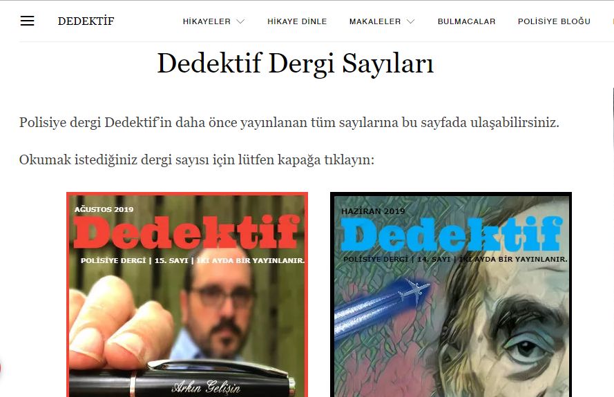 www.dedektifdergi.com adresinden bilgisayar, tablet ve akıllı telefon ile kolaylıkla erişilebilen Dedektif Dergi, yayınlandığı günden itibaren iki ayda bir yeni sayı çıkararak süreklilik arz ederken, içerdiği polisiye öyküler, kitap ve dizi/film tanıtımları, değerlendirme ve araştırmalar, polisiye yazarlarıyla röportajlar ve makaleler ile büyük beğeni topladı. Hatta polisiye severlerin ilgisini o kadar çok çekti ki, konusunda Youtube’u bile geride bırakarak, internette “polisiye” kelimesi ile en fazla etkileşim yapan websitesi konumuna geldi.