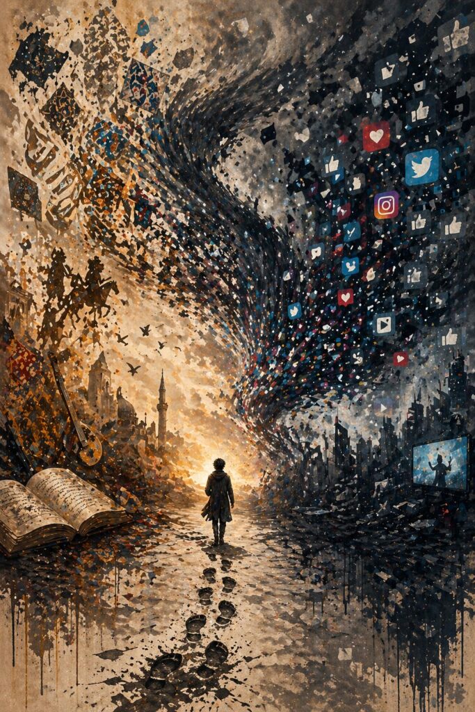 Dijital teknolojiler artık her şeyi değiştirdi; TikTok ve Instagram kültür endüstrisinin zirvesi oldu (Onbaşıoğlu, 2022, s. ii). Sosyal medya fenomenleri aile değerlerini ya da Çerkes mutfağı gibi gelenekleri paylaşırken, aslında bu kodları birer ticari meta haline getiriyorlar (Evin, 2025, s. v; Erek Ülgen, 2022, s. 4). Marx’ın o meşhur “katı olan her şey buharlaşıyor” tespiti gibi, köklü değerlerimiz sadece görünürlük uğruna eriyip gidiyor (Onbaşıoğlu, 2022, s. 65). Bir de işin siyasal şiddet boyutu var; şiddet anlatıları dili ve sembolleri kullanarak belleğimizi bir çatışma alanına hapsedebiliyor (Güven Önenli, 2021, s. 106). Nevruz gibi mitler siyasi çerçevelerle yeniden kodlanıp bizi “biz” ve “öteki” diye ayırabiliyor (Güven Önenli, 2021, s. 185).