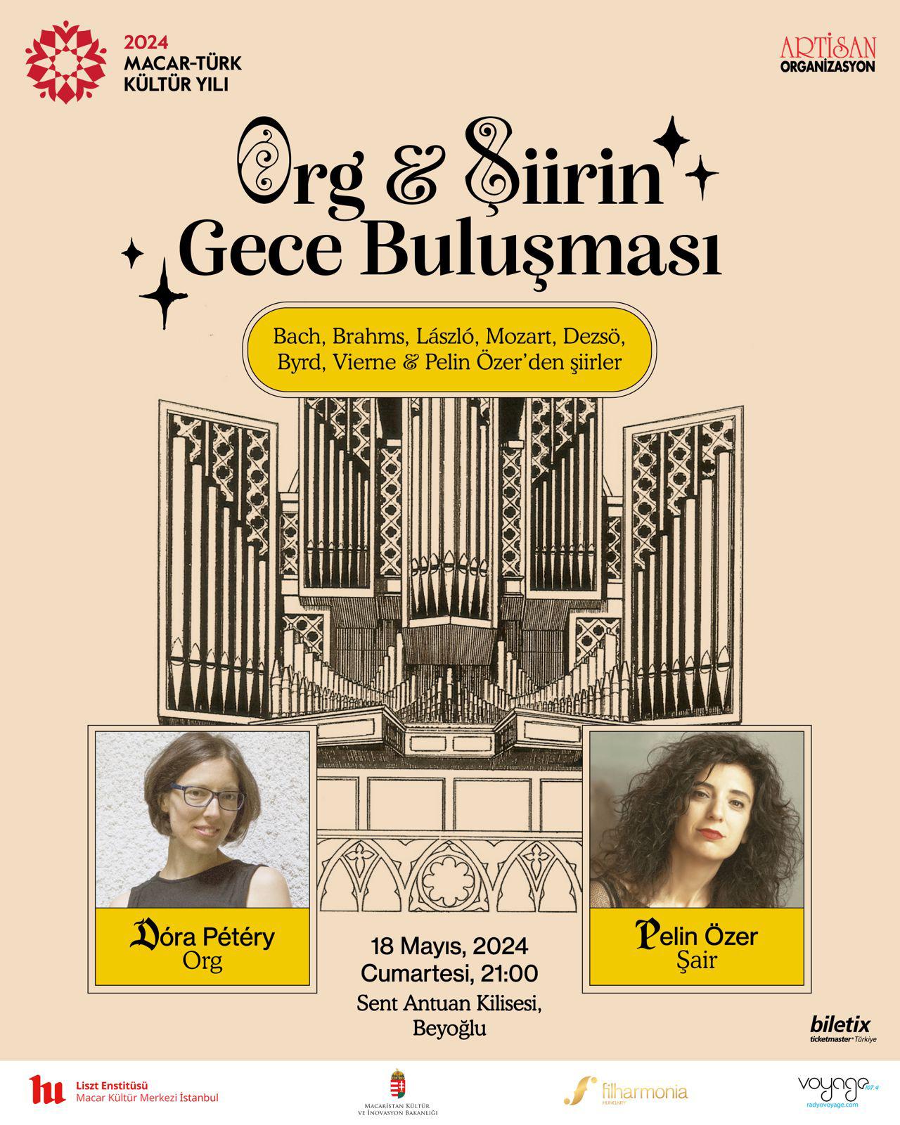 Macar-Türk Kültür Yılı kapsamında gerçekleşecek “Org ile Şiirin Gece Buluşması” etkinliğinde Macaristan’ın önde gelen org virtüözlerinden Dóra Pétery ile ülkemizin sevilen şair ve yazarlarından Pelin Özer 18 Mayıs’ta saat 21.00’de Sent Antuan Kilise’sinde “Org ile Şiirin Gece Buluşması” etkinliğinde bir araya geliyor.