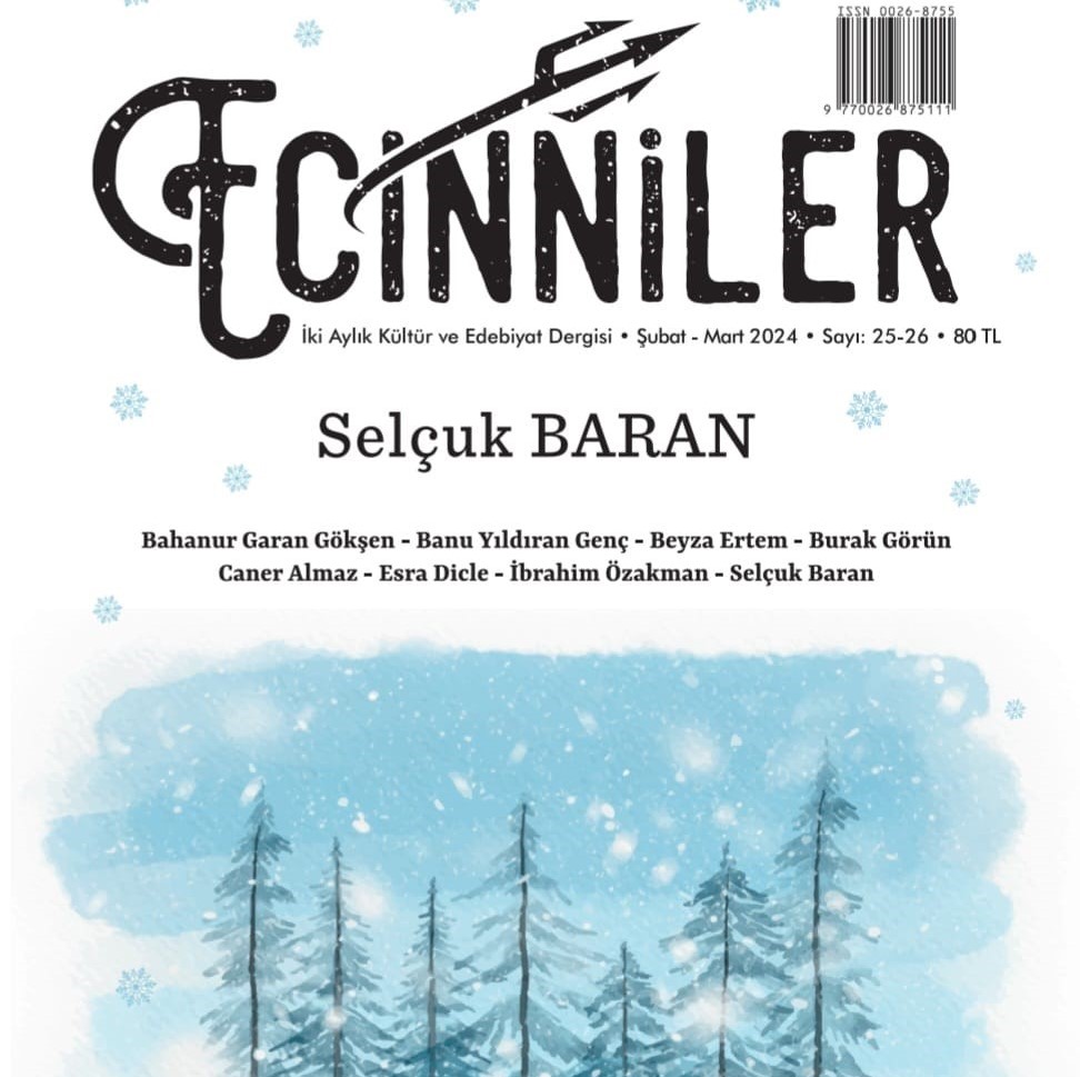 İki aylık kültür ve edebiyat dergisi Ecinniler, 25-26. birleşik sayısını yayımladı. Yayıncılık dünyasını derinden sarsan ekonomik sıkıntılar sebebiyle gecikmeli ve birleşik olarak yayımlanan yeni sayı raflarda. 2024 yılının ilk dosyası, edebiyatımızın usta kalemi Selçuk Baran’ı ve eserlerini konu alıyor. Yayın kuruluna yeni katılan Beyza Ertem’in editörlüğünde hazırlanan sayıda Beyza Ertem ile Esra Dicle’nin söyleşisi yanı sıra, Bahanur Garan Gökşen, Banu Yıldıran Genç, Burak Görün, İbrahim Özakman, Beyza Ertem’in incelemeleri yanı sıra Caner Almaz sunuşu ve katkılarıyla dosyaya dahil edilen Selçuk Baran ve Salim Alparslan söyleşisi de var.