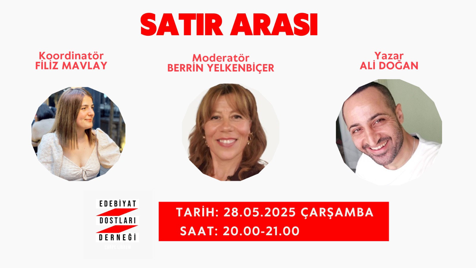 28 Mayıs 2025 Çarşamba günü yapılacak ilk Satır Arası programına bekliyoruz.