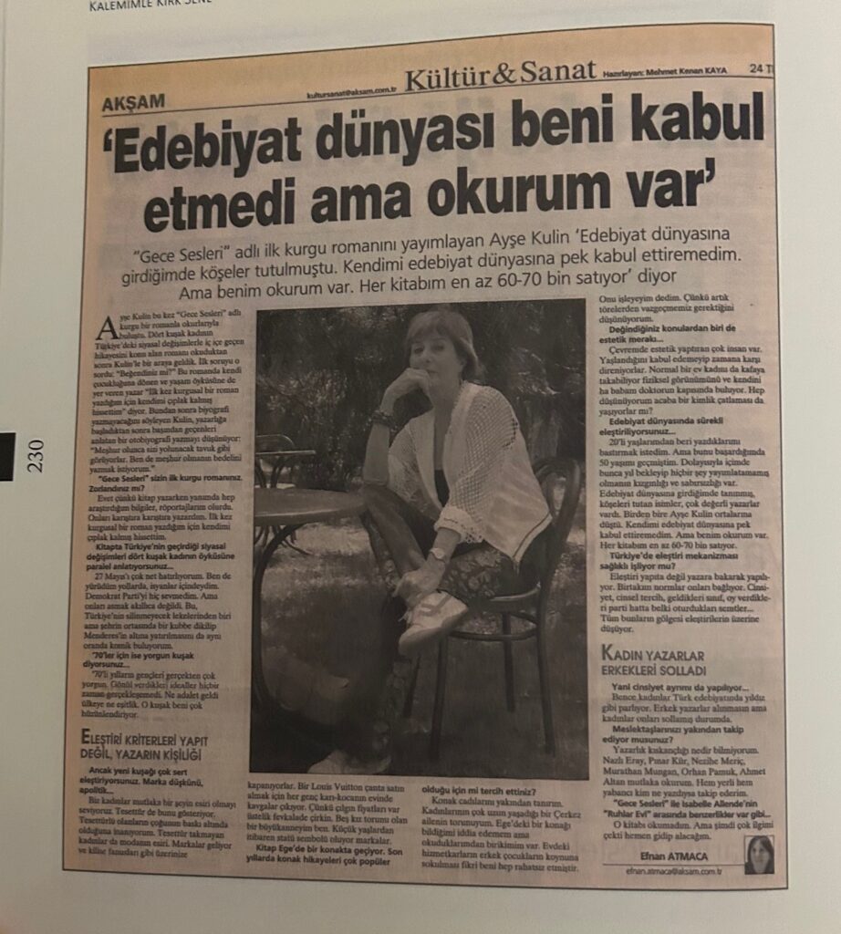 Ayşe Kulin’inki bir başarı hikayesi. Üstelik birkaç yılda gelip geçen değil 40 yıldır süren bir başarı.