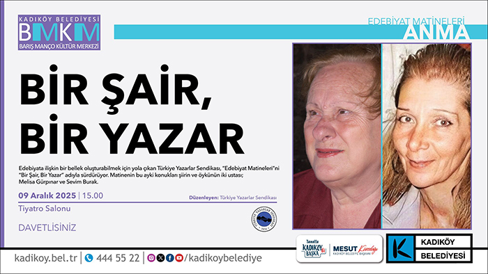 Türkiye Yazarlar Sendikası ile Kadıköy Belediyesi’nin değerli işbirliğiyle düzenlenen “Edebiyat Matineleri”, “Bir Yazar, Bir Şair” temasıyla edebiyat dünyamızın önemli isimlerini okurlarla buluşturmaya devam ediyor. Etkinlik 9 Aralık’ta gerçekleşiyor.
