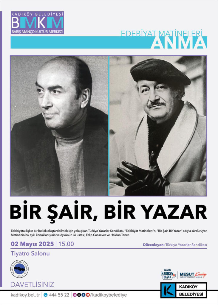 Türkiye Yazarlar Sendikası ile Kadıköy Belediyesi’nin işbirliğiyle düzenlenen “Edebiyat Matineleri” etkinlikleri, sendikanın 50. yılı vesilesiyle “Bir Şair, Bir Yazar” teması çerçevesinde devam etmektedir. Bu özel etkinlikte, Türk edebiyatının derinliklerinde iz bırakan iki büyük ustayı, yazar Haldun Taner ve şair Edip Cansever anılacak.