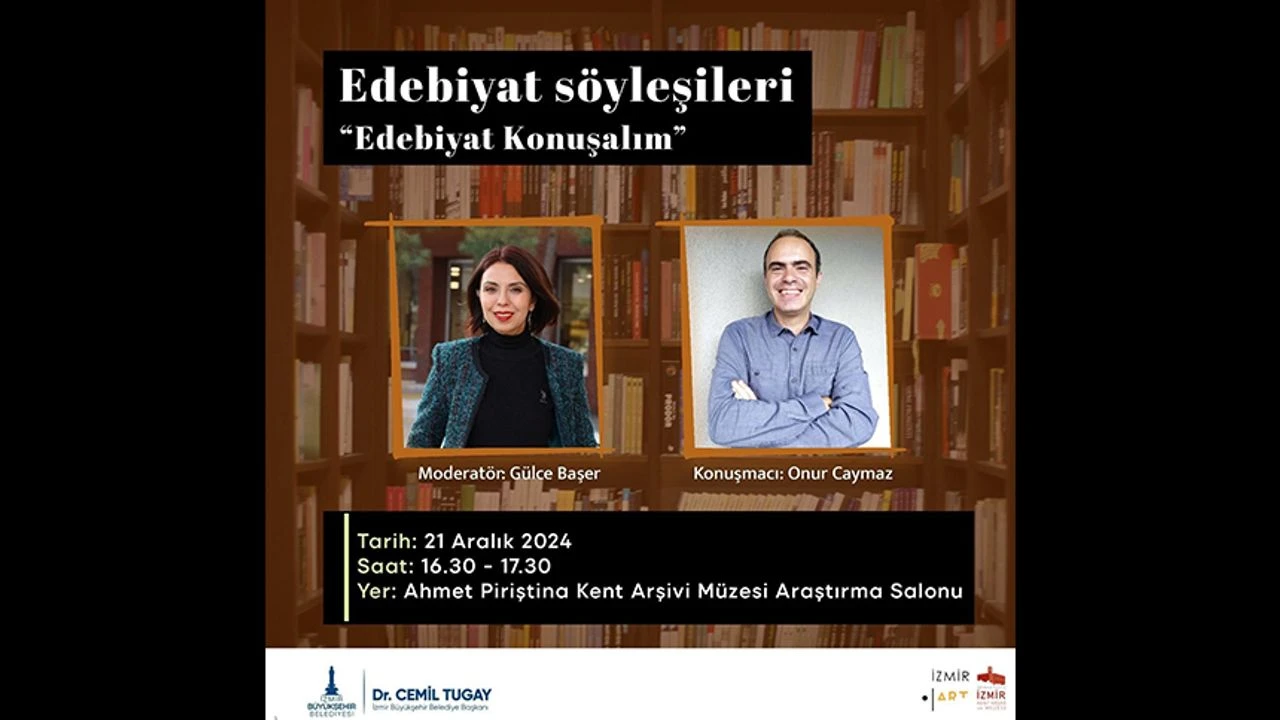 İzmir Büyükşehir Belediyesi Edebiyat Söyleşileri’nde yılın son buluşması, yazar Onur Caymaz’ın katılımıyla 21 Aralık Cumartesi günü Ahmet Piriştina Kent Arşivi ve Müzesi’nde gerçekleştirilecek. Edebiyatseverler, Caymaz’ın kitapları üzerine sohbet etme imkânı bulacak.