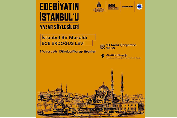 Türkiye Yazarlar Sendikası (TYS) ile İstanbul Büyükşehir Belediye Başkanlığı Kültür Dairesi Başkanlığı’nın değerli iş birliğiyle hayata geçirilen “Edebiyatın İstanbul’u – Yazar Söyleşileri“, Atatürk Kitaplığı’nda tüm heyecanıyla devam ediyor. Dilruba Nuray ERENLER’in kolaylaştırıcılığıyla, İstanbul Bir Masaldı Ece Erdoğuş Levi’yle konuşacağız.