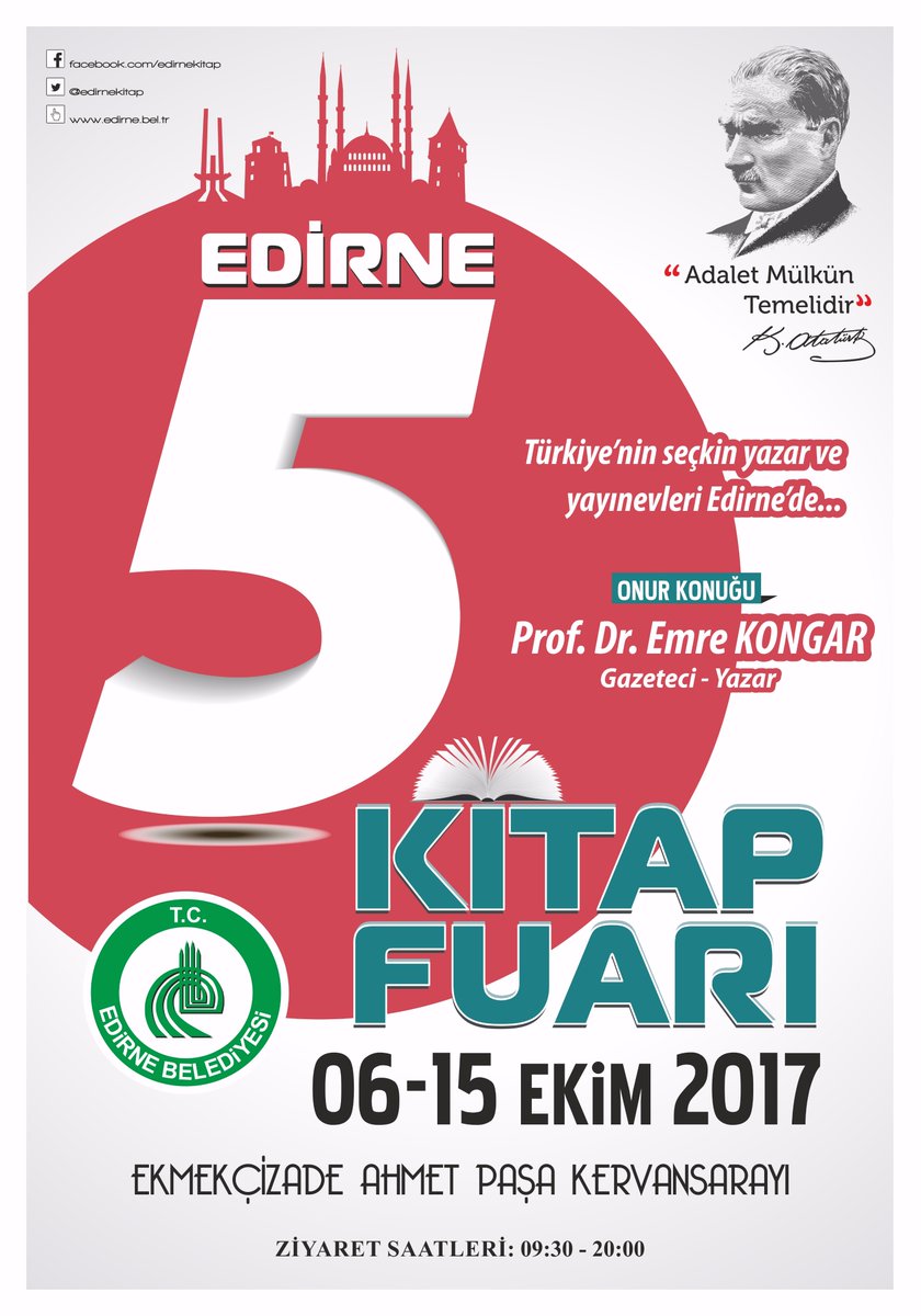 Edirnelilerin heyecanla beklediği Edirne 5. Kitap Fuarı; 6 Ekim 2017 tarihinde kapılarını açıyor. Fuarın bu yılki Onur Konuğu ise Emre Kongar.
