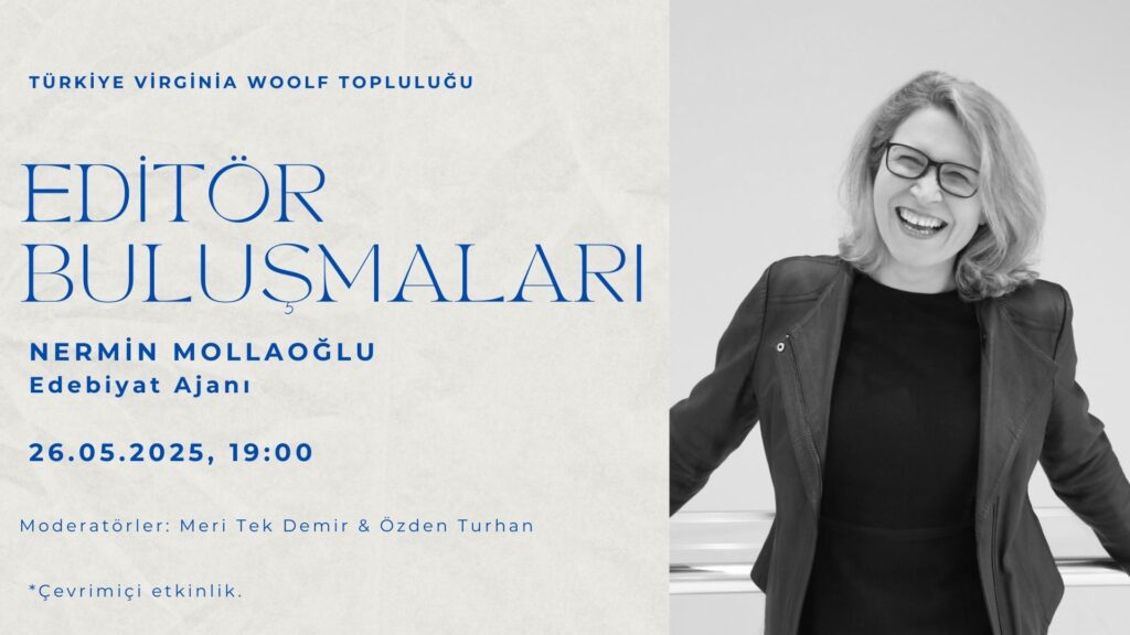 Türkiye Virginia Woolf Topluluğu’nun düzenlediği editör buluşmalarının konuğu Nermin Mollaoğlu oluyor. Etkinlik Meri Tek Demir ve Özden Turhan moderatörlüğünde 26 Mayıs 2025 saat 19.00’da gerçekleştirilecek.