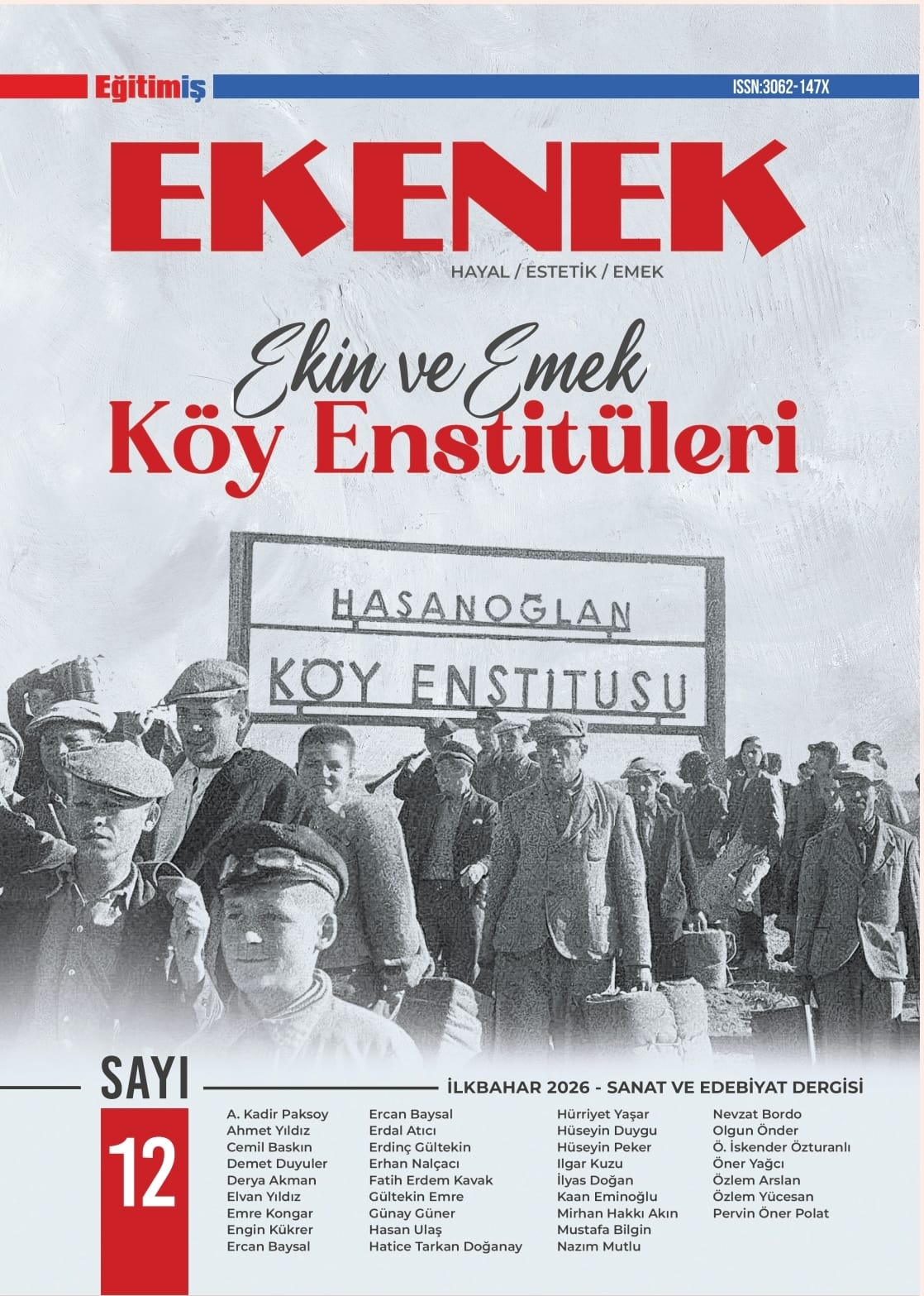 Edebiyat ve düşün dünyasına özgün katkılar sunmayı sürdüren Ekenek Dergisi, 12. sayısıyla okurlarıyla buluşuyor. Bu sayının dosya konusu: Türkiye’nin aydınlanma geçmişinde önemli bir yer tutan Köy Enstitüleri. “Ekin ve Emek” başlığıyla ele alınan dosya, üretimle eğitimi buluşturan bu özgün modelin tarihsel, toplumsal ve kültürel boyutlarını kapsamlı biçimde tartışmaya açıyor.