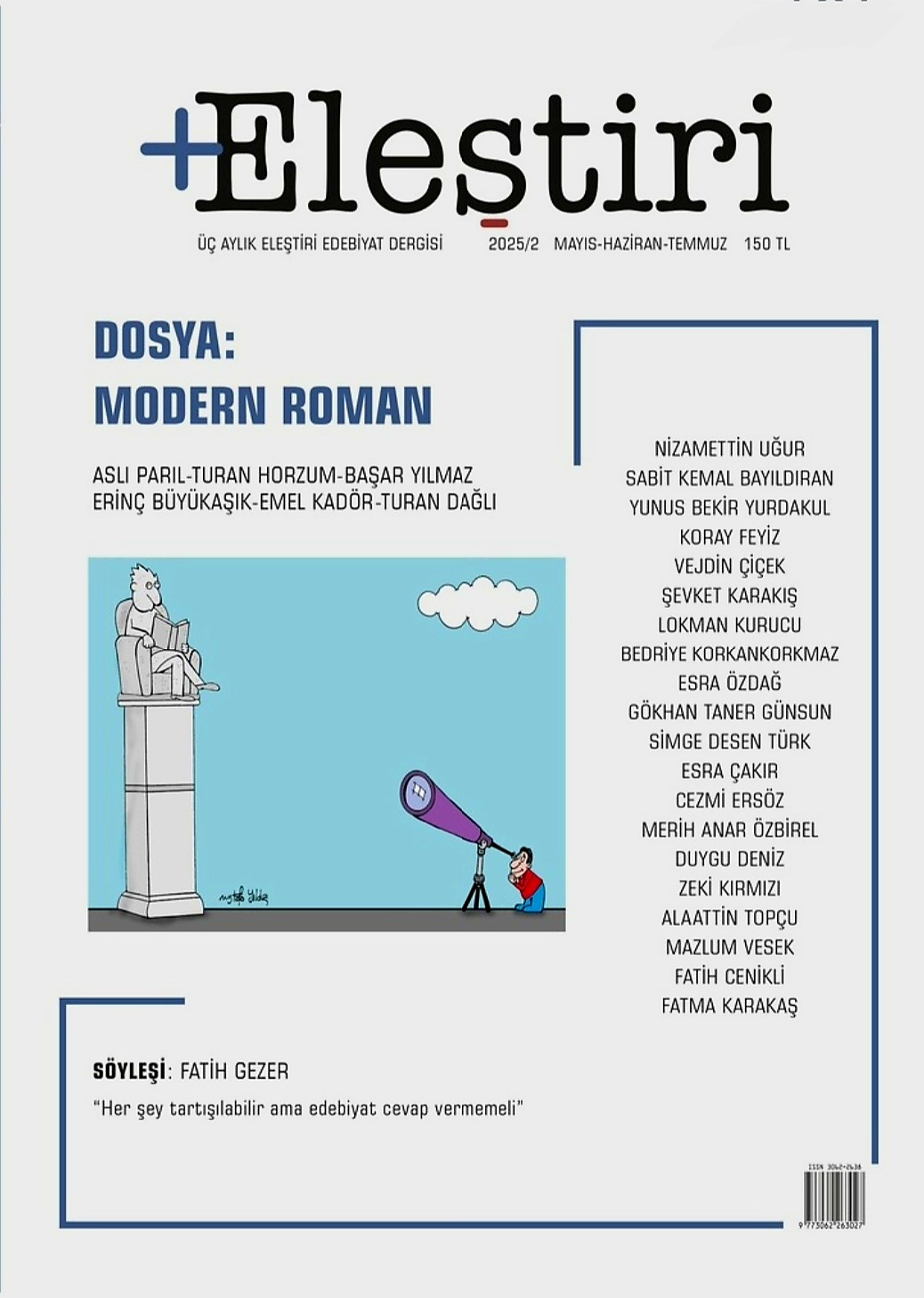 Üç aylık periyodlarla çıkan +ELEŞTİRİ dergisinin ikinci (Mayıs-Haziran-Temmuz 2025) sayısında, dosya konusu “Modern Roman” olarak belirlendi. “Editörden” başlıklı önsöz yazısını, Kemal Horzum kaleme aldı. Karikatürler ise, ulusal ve uluslararası birçok ödül sahibi Mustafa Yıldız tarafından hazırlandı.