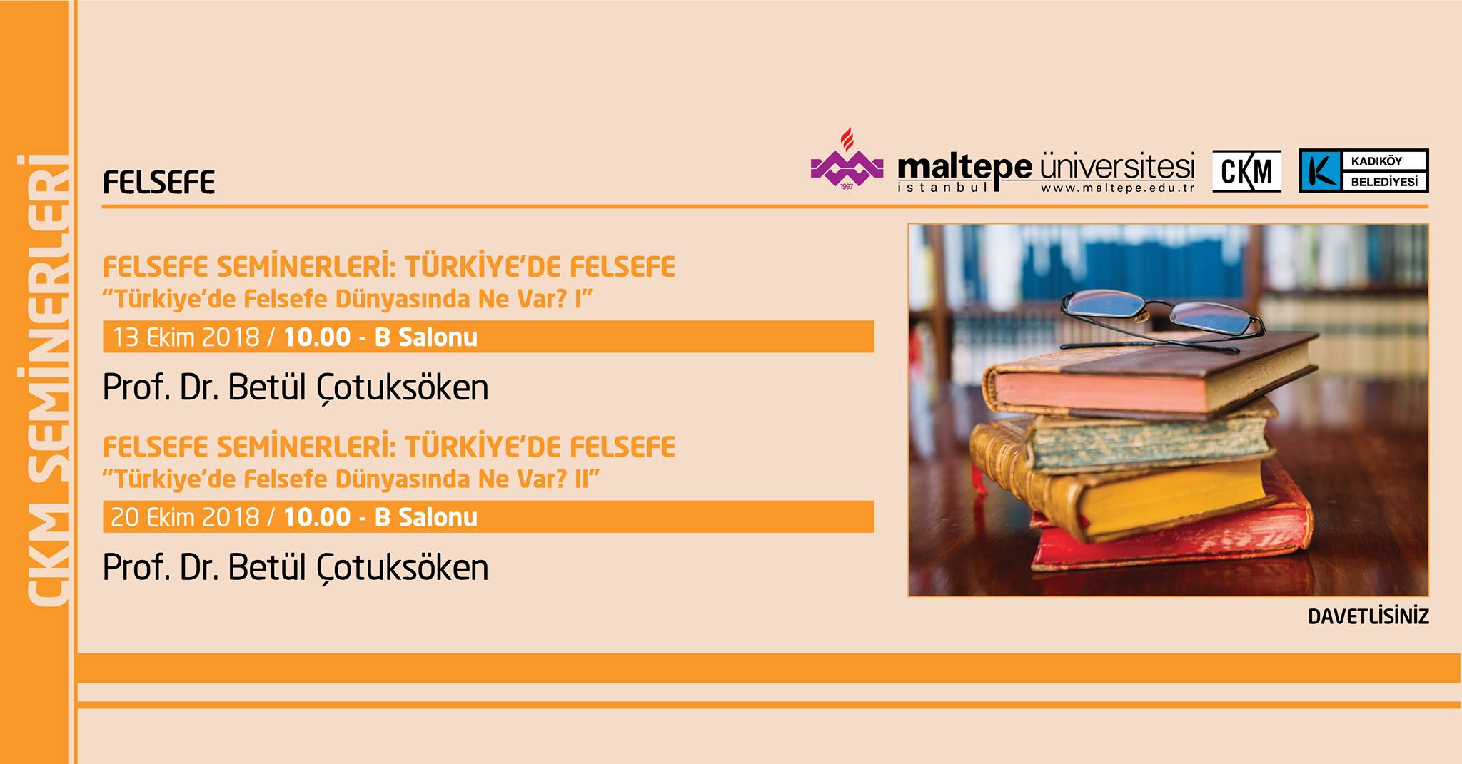 Düzenlediği etkinliklerle sanat, bilim, akademi, felsefe dünyasının birçok ismini meraklılarıyla buluşturan CKM’de yeni sezonla birlikte felsefe seminerleri de başlıyor. Kadıköy Belediyesi ve Maltepe Üniversitesi iş birliğiyle sezon boyu devam edecek “Türkiye’de Felsefe Dünyasında Ne Var?” adlı seminerin ekim ayı programının konuğu felsefeci, çevirmen, yazar Prof. Dr. Betül Çotuksöken.