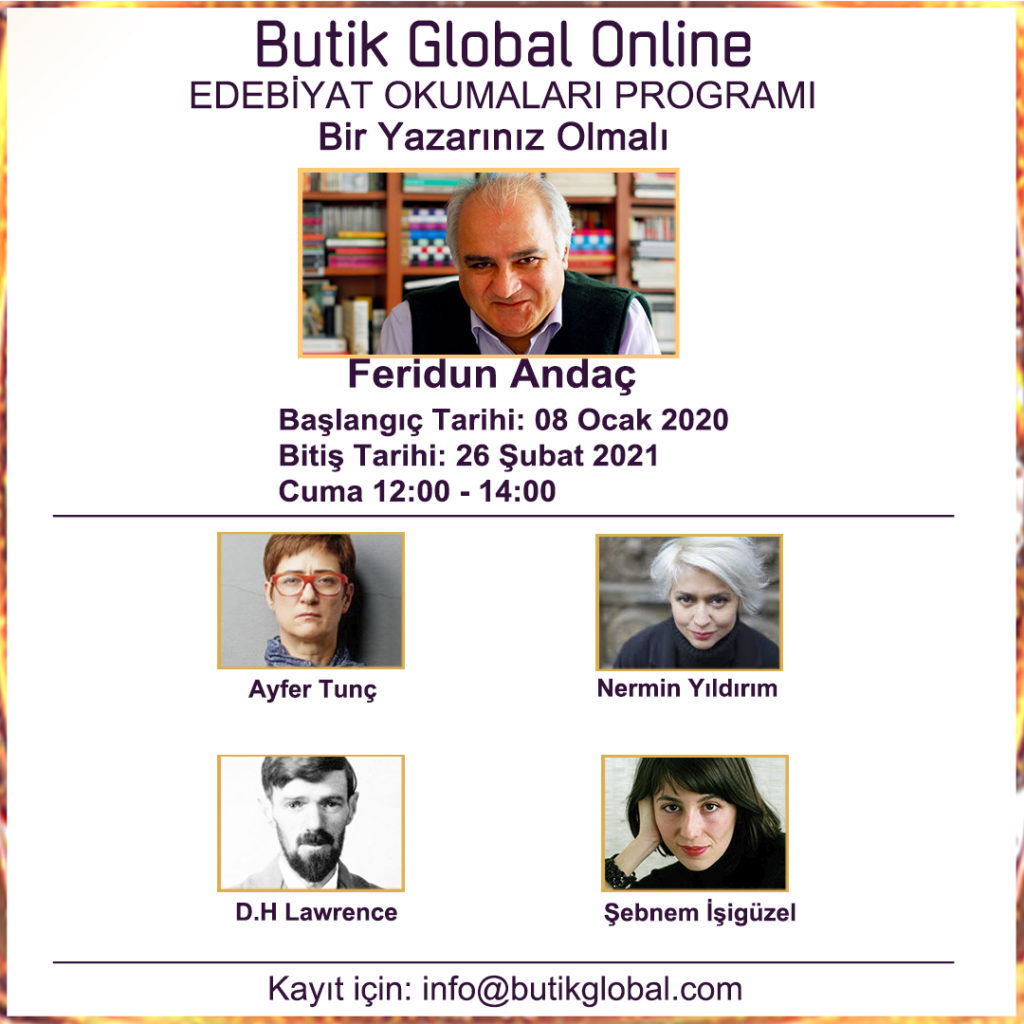 Butik Global Online’ın düzenlediği Feridun Andaç ile Edebiyat Okumaları 8 Ocak’ta başlıyor.