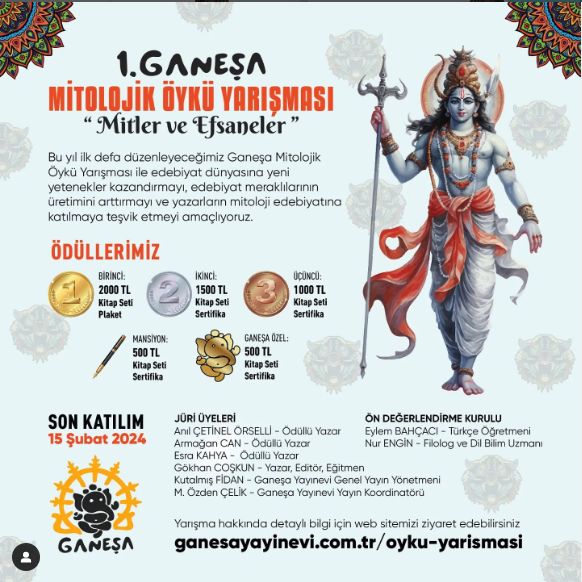 Ganeşa Yayınevinin düzenlediği 1. Ganeşa Mitolojik Öykü Yarışması başladı.