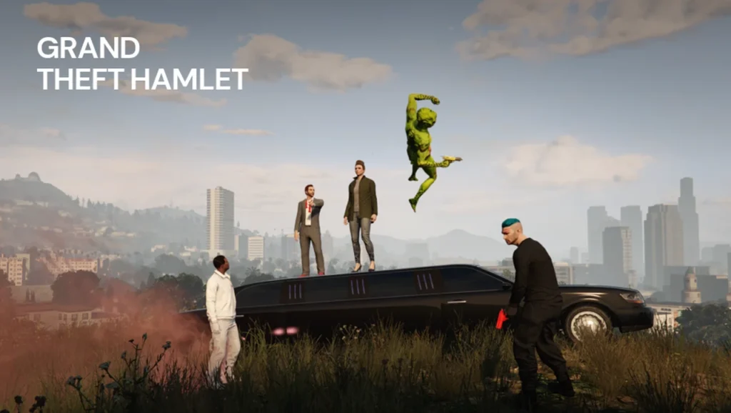 Grand Theft Hamlet — yalnızca bir film değil, varoluşun dijital imgeler üzerinden yeniden biçimlendiği bir ontolojik deneyim. Shakespeare’in Hamlet’i ile Rockstar Games’in Grand Theft Auto V’inin birbirine sirayet ettiği bu yapım, sanatın mekânsal ve zamansal sınırlarını belirsizleştiren bir manifesto.