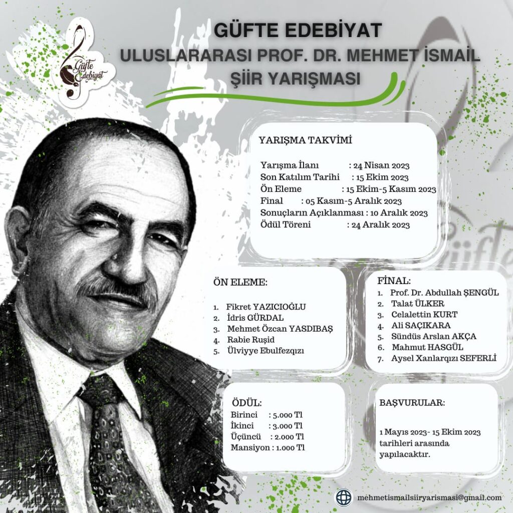 Azerbaycan, Güney Azerbaycan, Özbekistan, Kırgızistan, Tataristan, Kuzey Makedonya, Türkmeneli/Irak, Romanya ve Doğu Türkistan yayın kurulları ile bu ülkelerden de eser yayımlayan ve Türk dünyasında ses getiren Güfte Edebiyat, Türk dünyasının büyük şairi Azerbaycan/Tovuz(1939) doğumlu, uzun yıllar Çanakkale Onsekiz Mart Üniversitesi Türk Dili ve Edebiyatı Bölümü’nde öğretim üyesi olarak görev yapan Prof. Dr. Mehmet İsmail adına Türk dünyasında ortak kültürel ve sanatsal bağların güçlendirilmesi amacıyla uluslararası bir şiir yarışması düzenliyor.